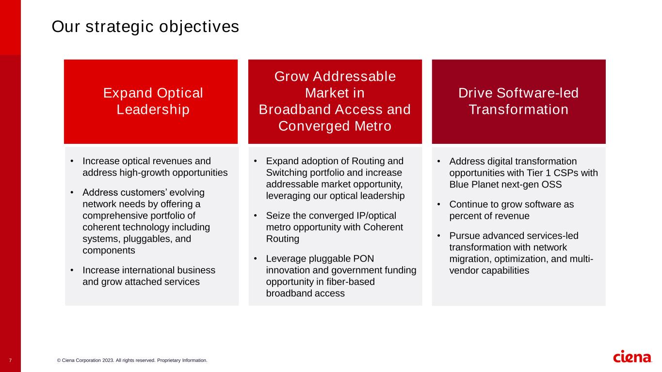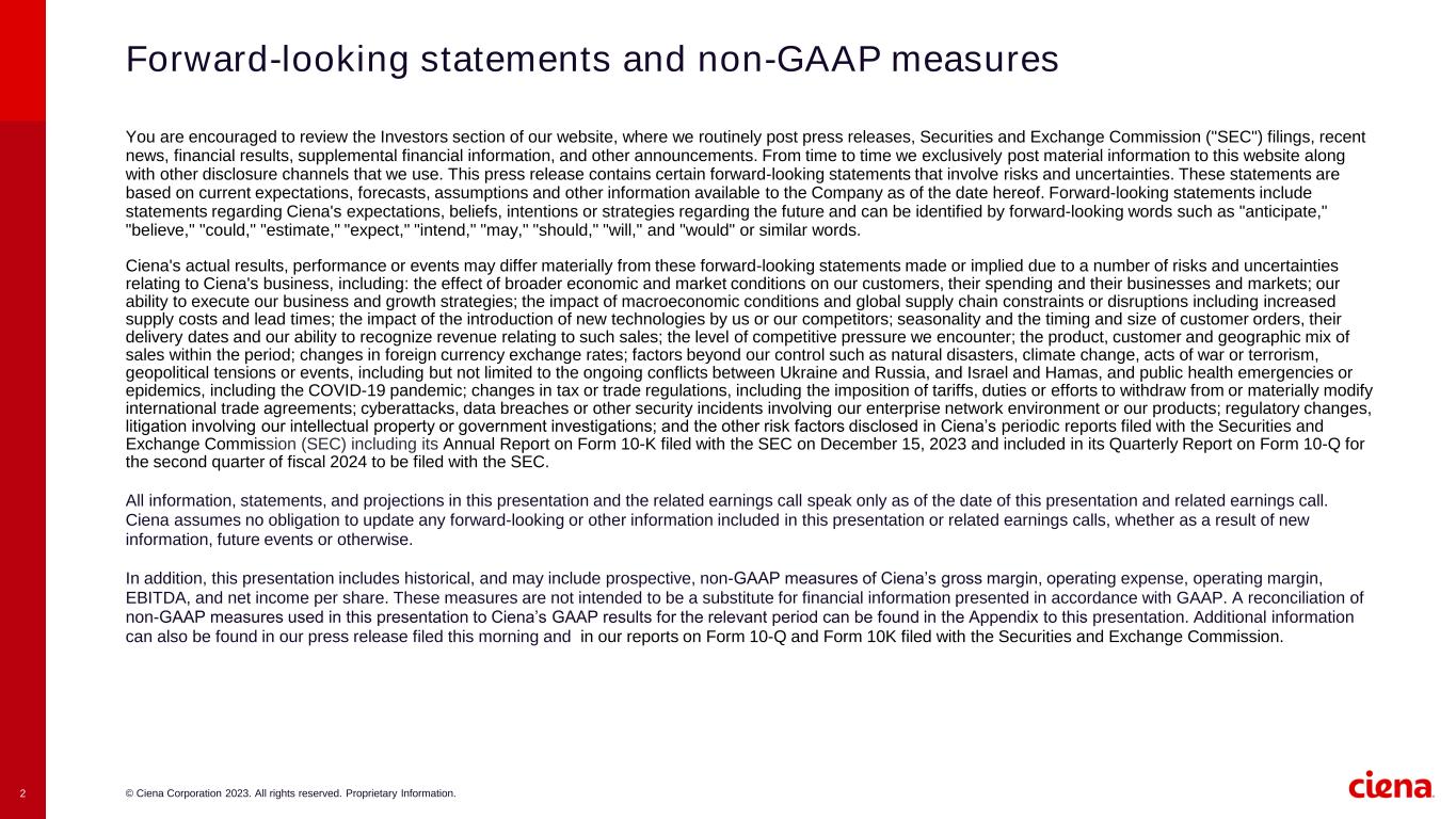 | Optical Networking | $ | 560.2 | 61.5 | $ | 784.5 | 69.3 | ||||||||||||||||||||