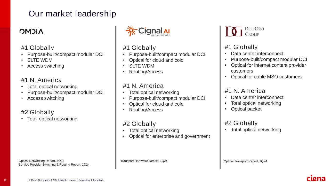「第2四半期の業績は、サービスプロバイダーが既存在庫の消化を続けるという短期的には厳しい環境の中で、当社の事業の強さを浮き彫りにしています。「帯域幅の需要が引き続き堅調に伸びていることから、当社は引き続き、アドレス可能な市場を拡大するための基盤として、光におけるリーダーシップを拡大することに注力していきます。