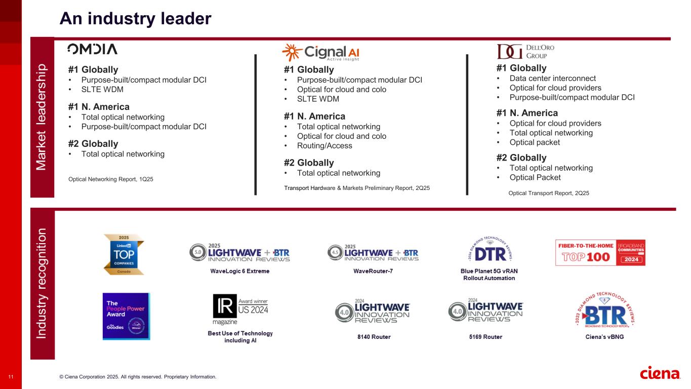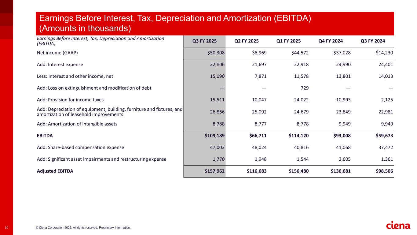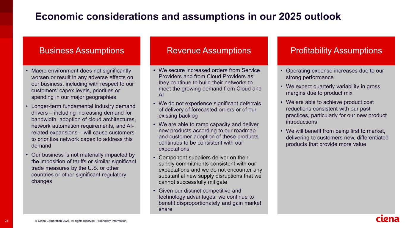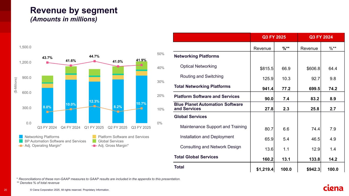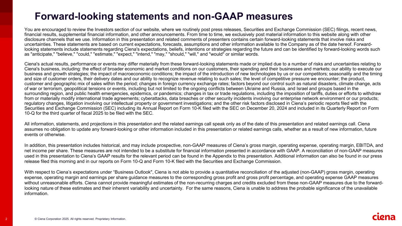メリーランド州ハノーバー - 2025年9月4日 - ネットワーキング・システム、サービス、ソフトウェアのシエナ®・コーポレーション(NYSE: CIEN)は本日、2025年8月2日を期末とする会計年度第3四半期の未監査決算を発表した。