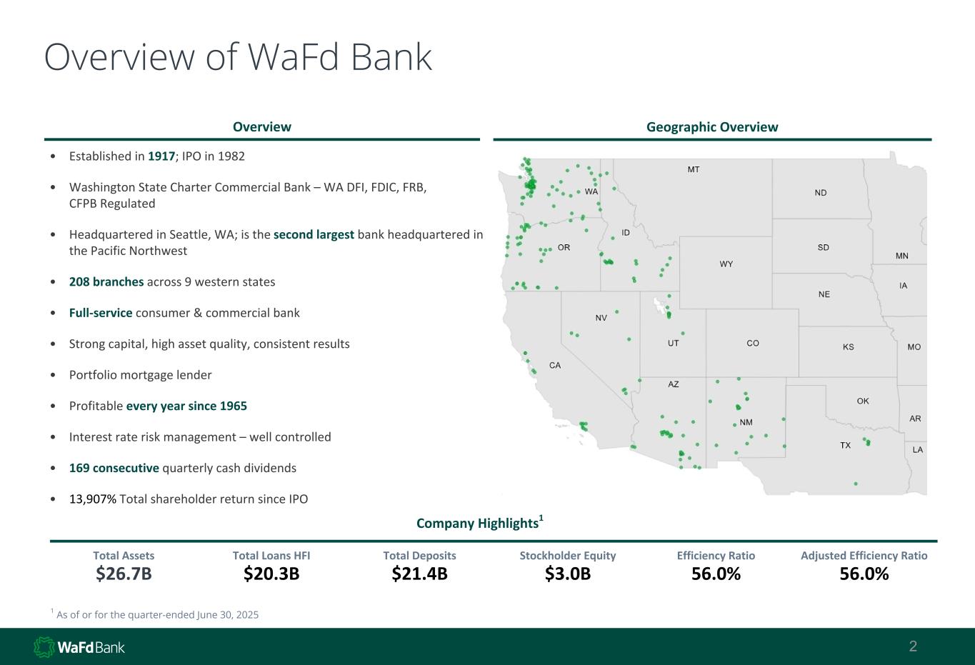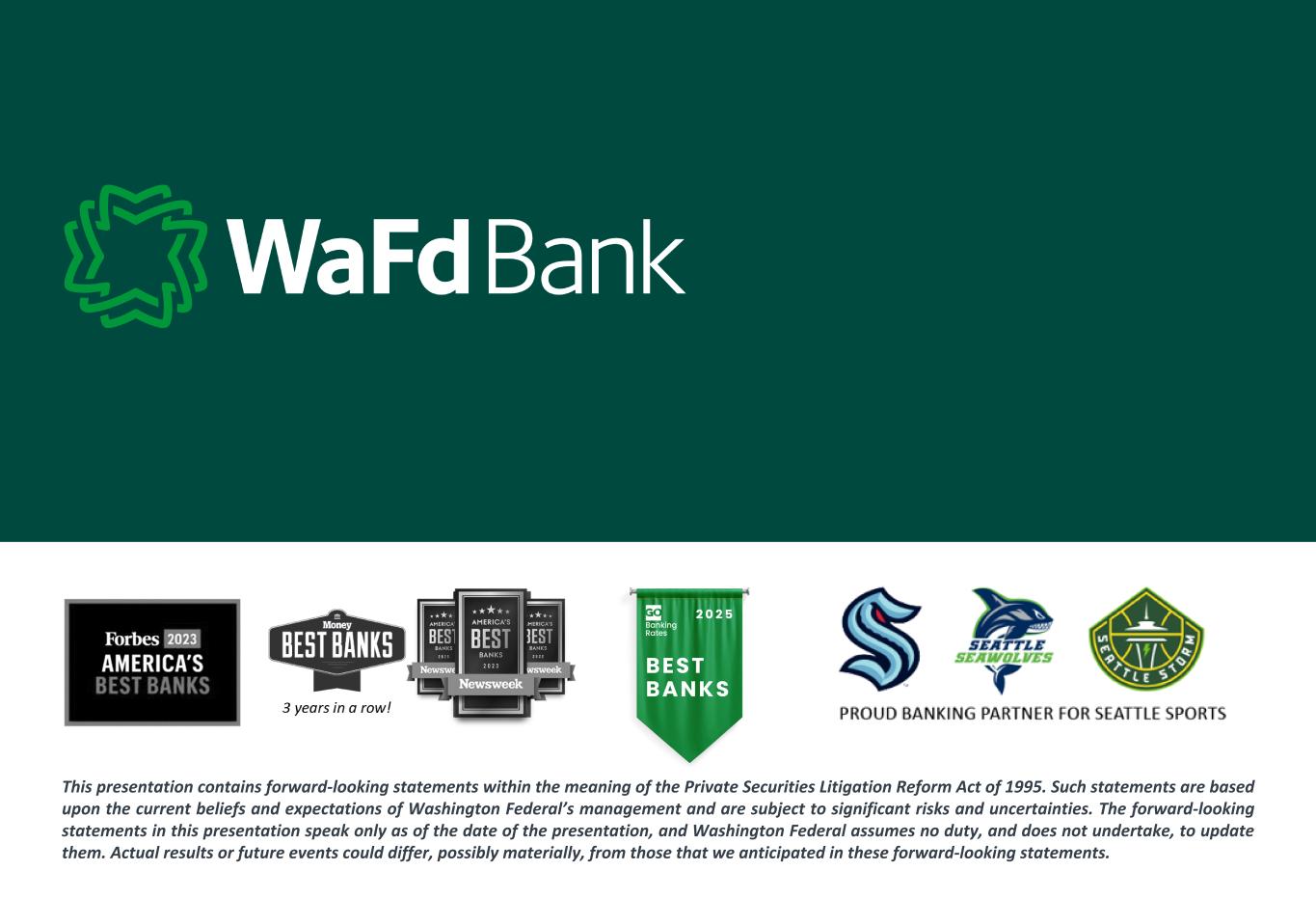 This presentation contains forward-looking statements within the meaning of the Private Securities Litigation Reform Act of 1995. Such statements are based upon the current beliefs and expectations of Washington Federal’s management and are subject to significant risks and uncertainties. The forward-looking statements in this presentation speak only as of the date of the presentation, and Washington Federal assumes no duty, and does not undertake, to update them. Actual results or future events could differ, possibly materially, from those that we anticipated in these forward-looking statements. 1 Investor Presentation As of June 30, 2025