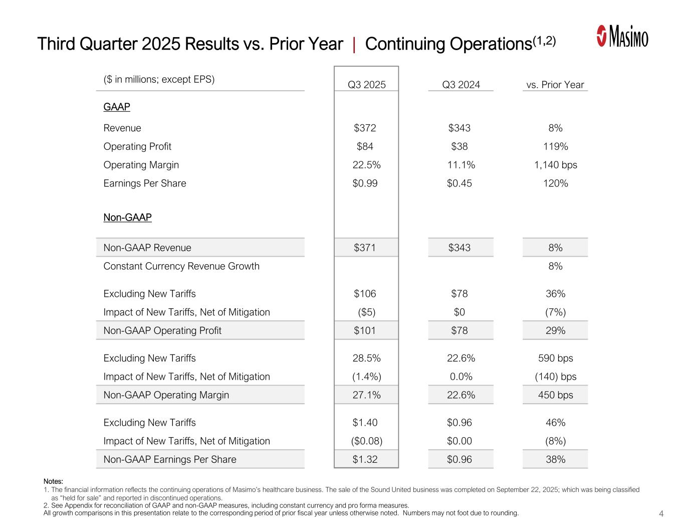 Irvine, California, November 4, 2025 - Masimo Corporation (Nasdaq: MASI) today announced its financial results for the third quarter ended September 27, 2025.
