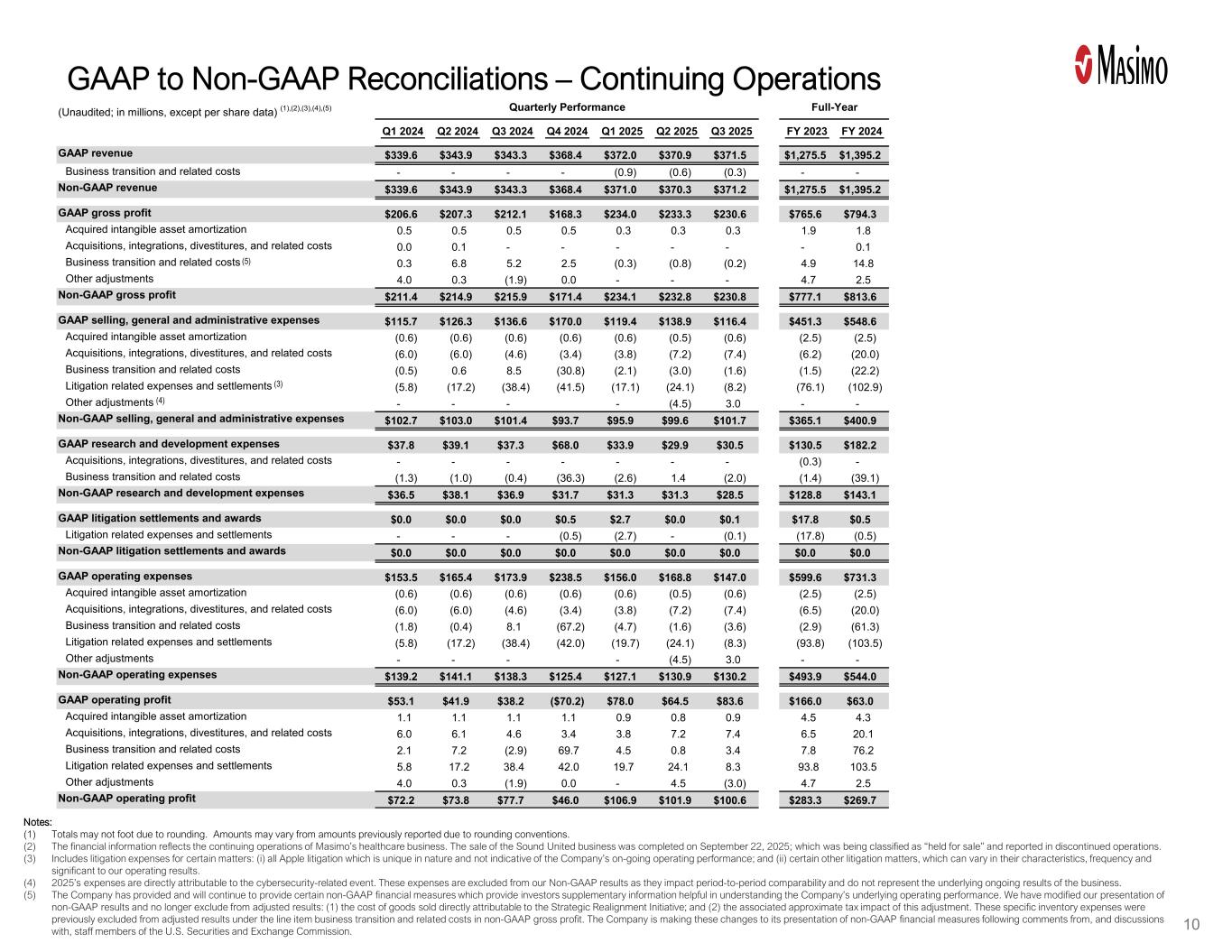The financial information reflects the continuing operations of Masimo’s healthcare business. |
