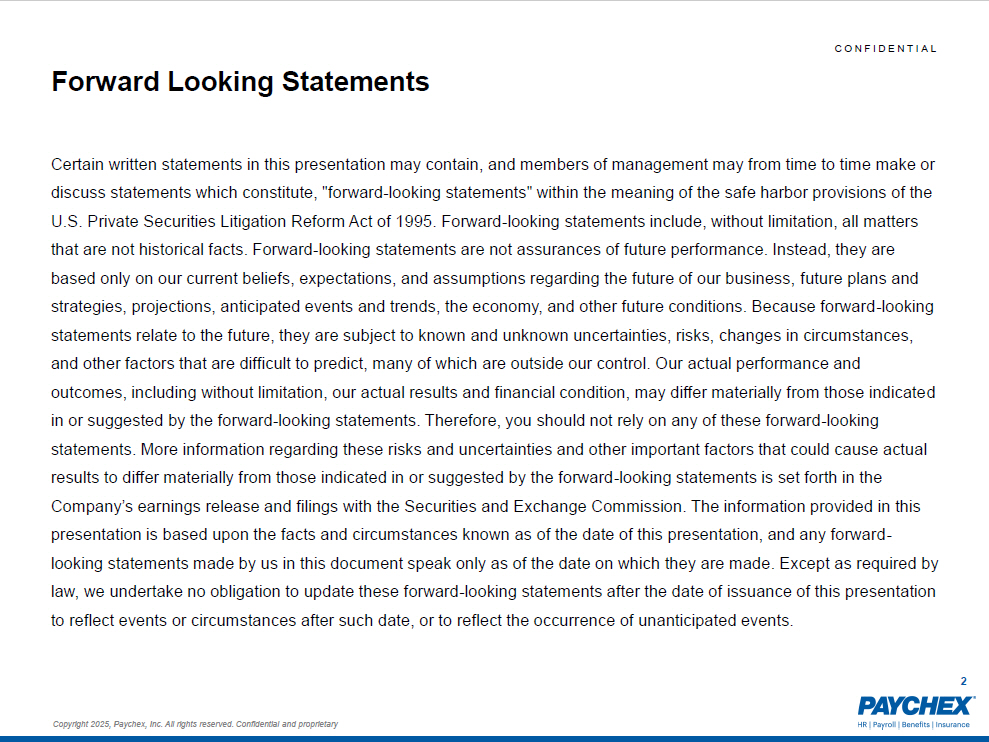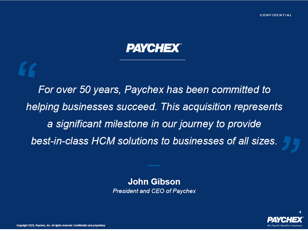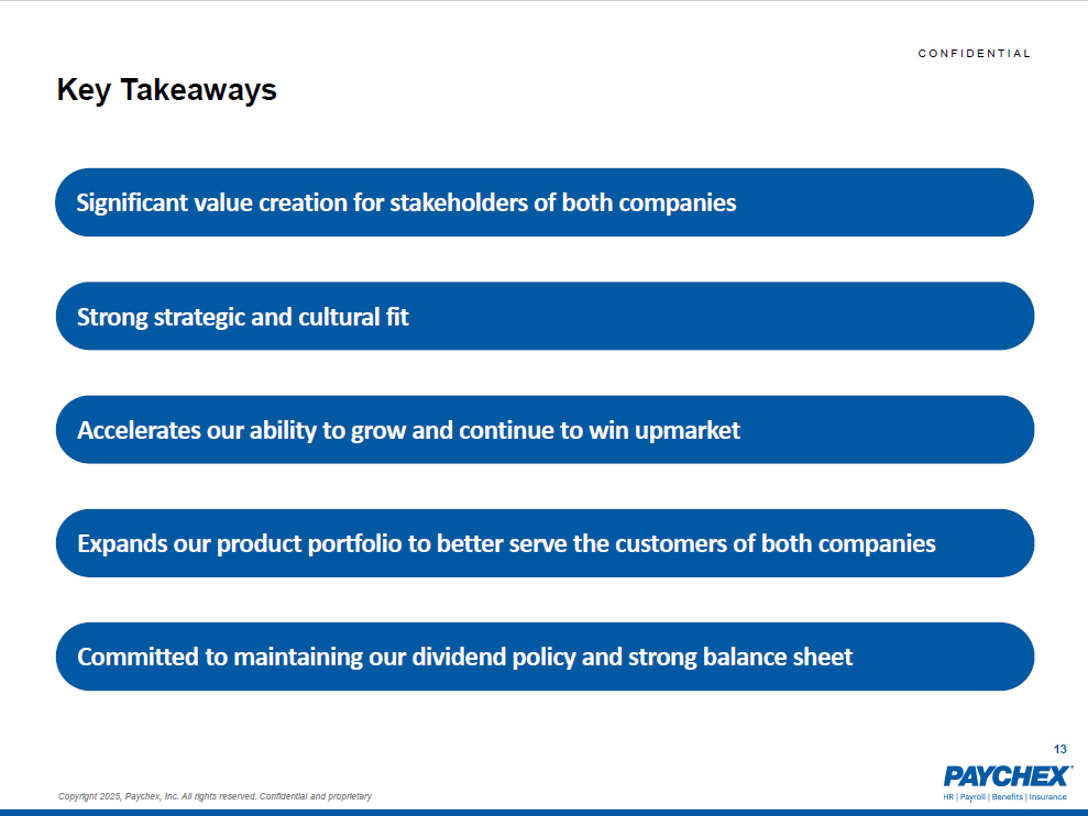 本合併契約の発表に関連して、Paychex社はアナリストおよび投資家向けのプレゼンテーションにおいて、提案されている取引に関する補足情報を提供しました。プレゼンテーションに関連して利用可能となったスライドは、別紙99.2としてここに添付され、参照によりここに組み込まれる。
