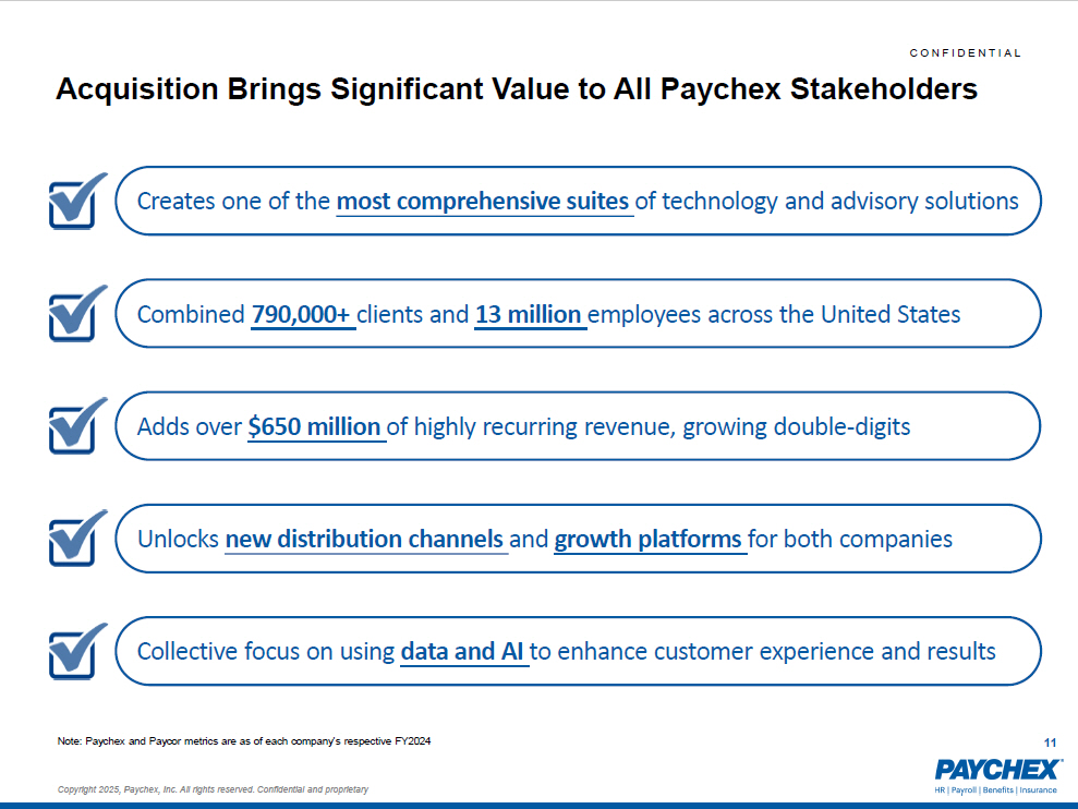 2025年1月7日、Paychexは合併契約の締結を発表するプレスリリースを発表した。このプレスリリースのコピーは別紙99.1として添付され、参照により本書に組み込まれる。