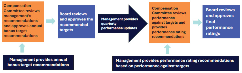 | (c) | approving the corporate objectives, which form the basis for Management’s incentive compensation, and reviewing progress against those objectives; |