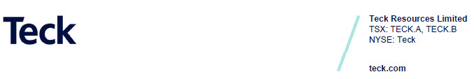 TECK.B and the New York Stock Exchange under the symbol TECK. Learn more about Teck at www.teck.com