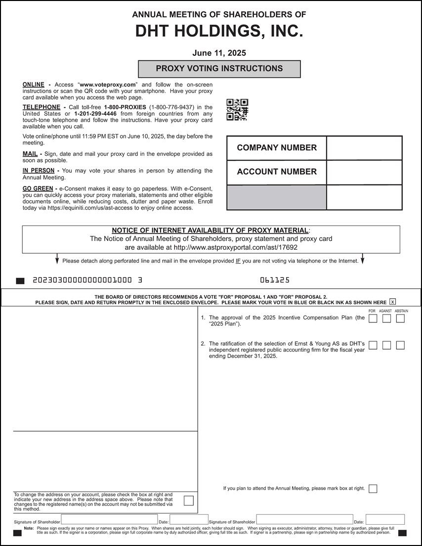 (2) To ratify the selection of Ernst & Young AS as DHT’s independent registered public accounting firm for the fiscal year ending December 31, 2025.