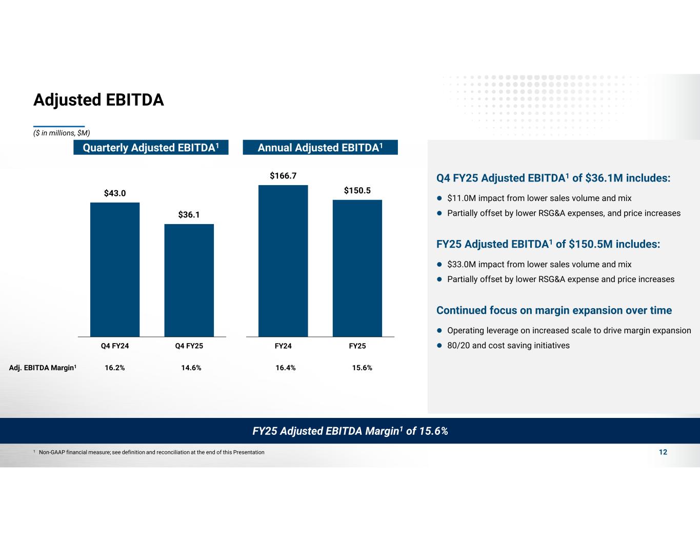 •Adjusted EBITDA1 of $36.1 million with Adjusted EBITDA Margin1 of 14.6%