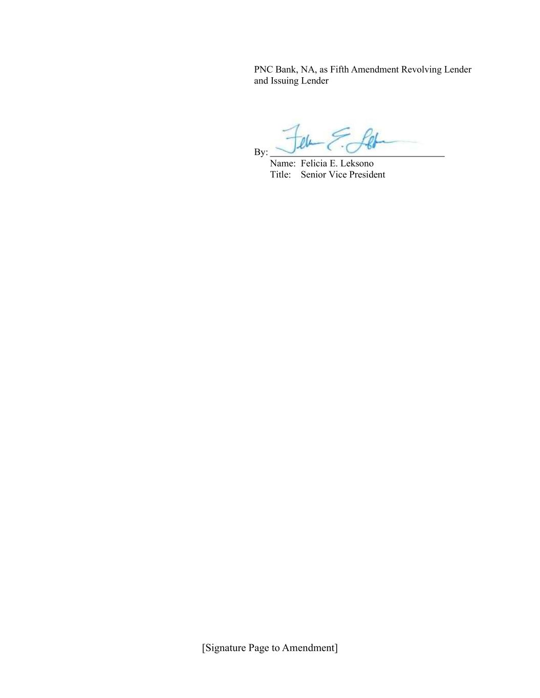 [Signature Page to Amendment] PNC Bank, NA, as Fifth Amendment Revolving Lender and Issuing Lender By: Name: Felicia E. Leksono Title: Senior Vice President