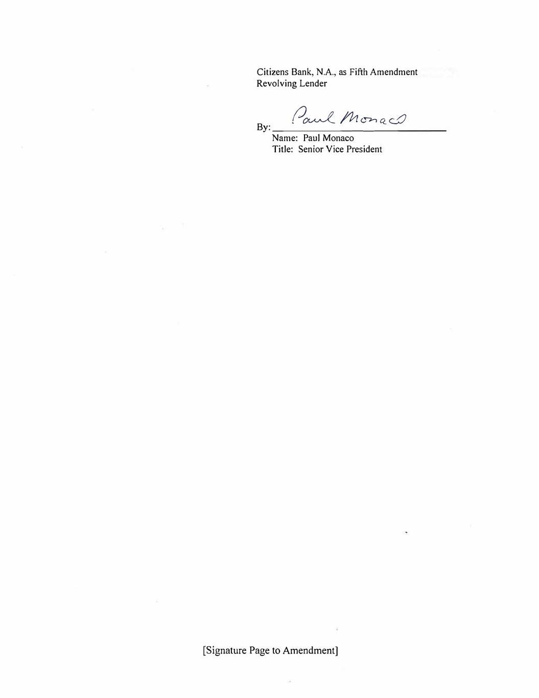 Citizens Bank, N.A., as Fifth Amendment Revolving Lender p cx.,,..J_ /21 c)?-, Q_ c.{J By: ______________ _ Name: Paul Monaco Title: Senior Vice President [Signature Page to Amendment]