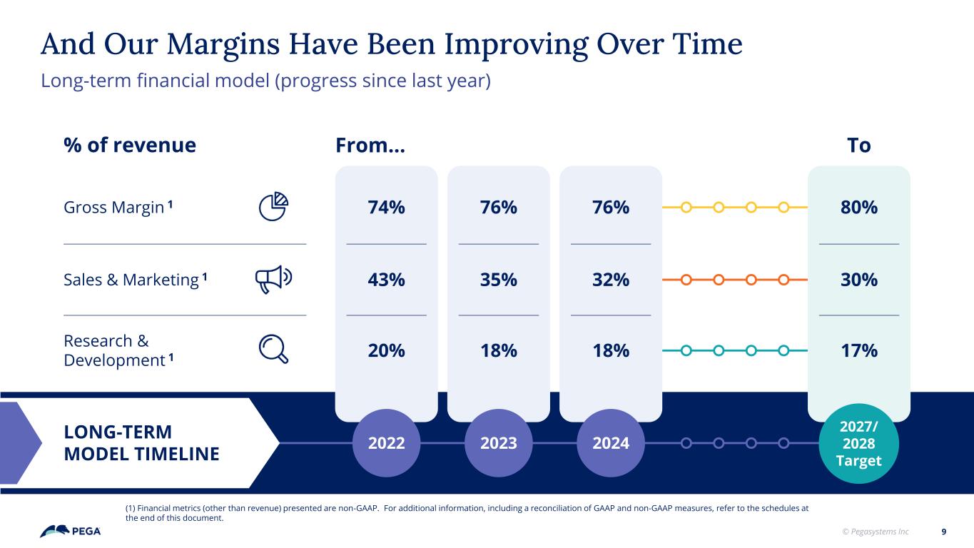 © Pegasystems Inc Pega GenAI Blueprint Significant Expansion Opportunity Cross-sell & upsell into the base Pega Cloud Migrations Move existing clients to Pega Cloud A B C 8 New Logos Win new clients with partner Blueprints and legacy transformation We Have Several Levers to Accelerate ACV Growth