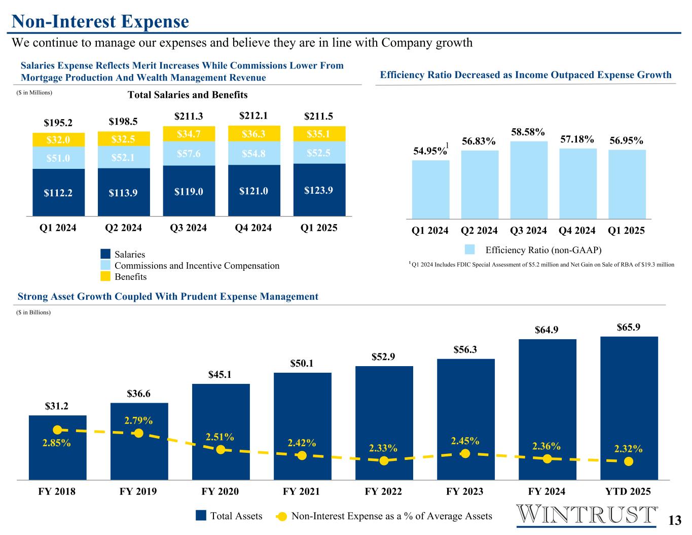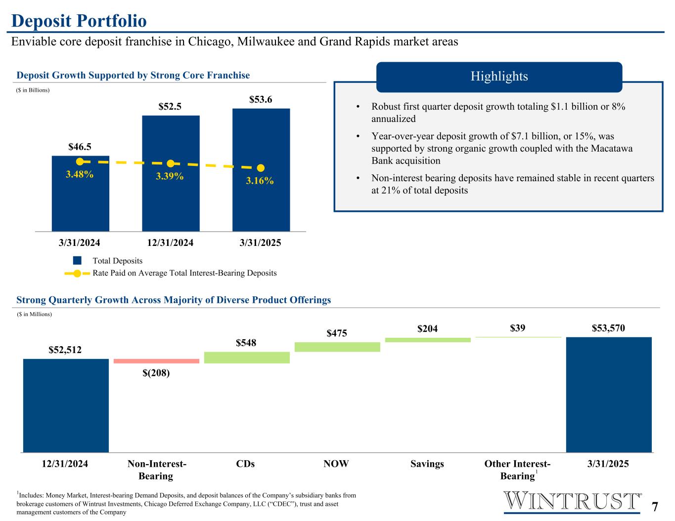 ティモシー・S・クレーン社長兼最高経営責任者(CEO)は次のようにコメントした。バランスの取れたビジネス・モデルが規律ある貸出増加を支え、2025 年第 1 四半期には堅調な預金増加によって資金が供給されました。"