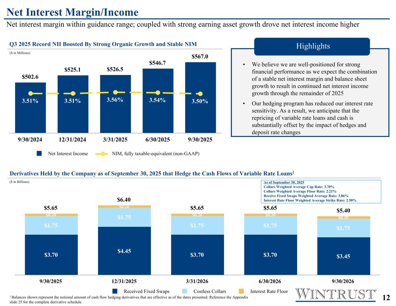 第3四半期の純金利マージンは3.50%と予想の範囲内で推移し、平均稼得資産の力強い成長に牽引され、記録的な純金利利益を計上しました。第4四半期は、比較的安定した純利鞘と継続的なバランスシートの成長が純利鞘収益の拡大に寄与すると予想しています。