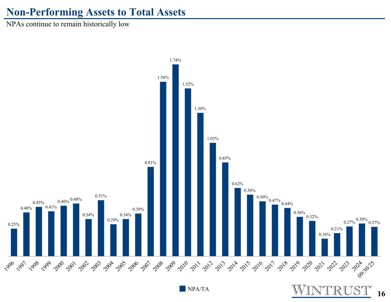 -不良債権は2025年第3四半期に改善し、2025年9月30日時点では総額1億6,260万ドル、貸出金総額の0.31%を占めた(2025年6月30日時点では1億8,880万ドル、貸出金総額の0.37%)。
