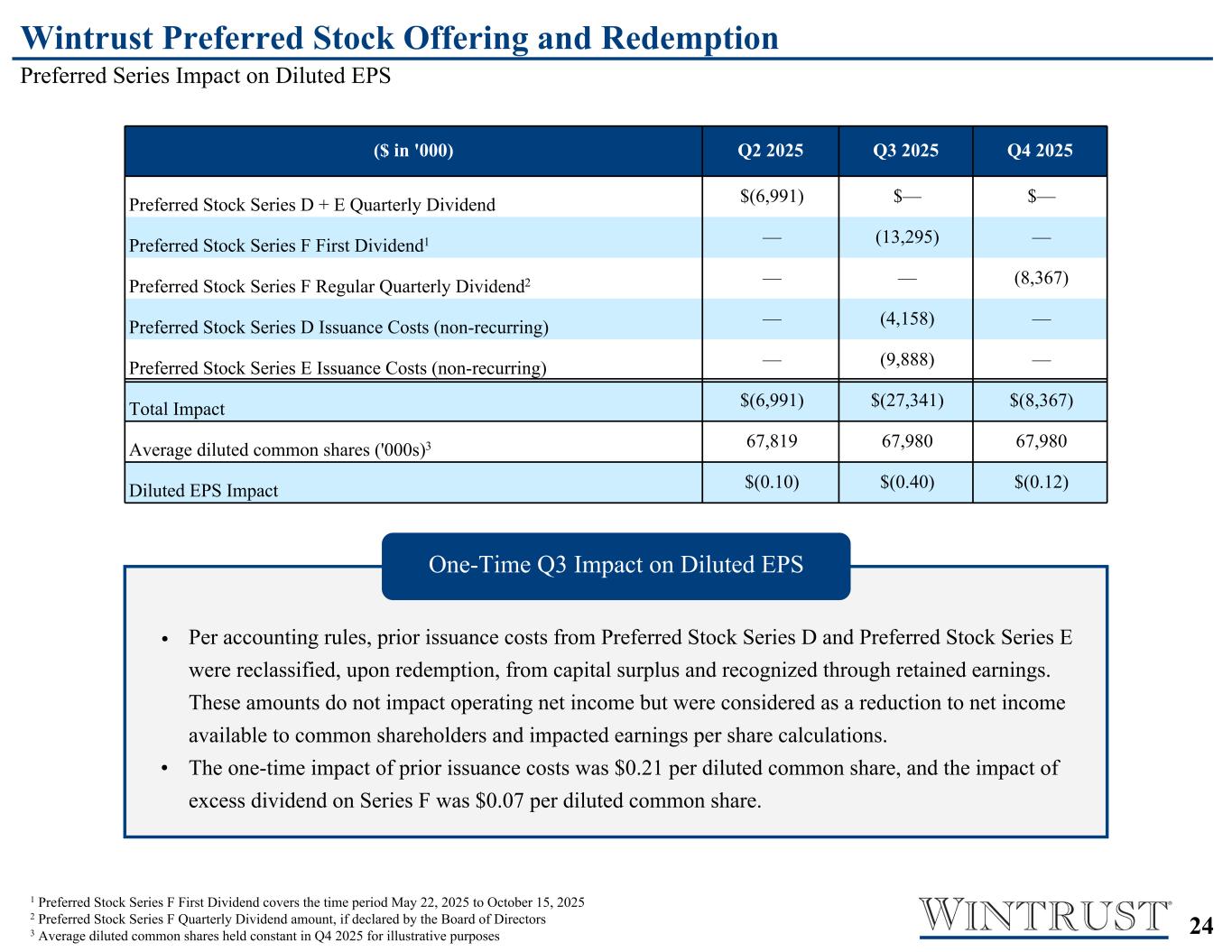 -2025年度第3四半期の希薄化後普通株式1株当たり利益2.78ドルは、優先株式シリーズDおよび優先株式シリーズEに関連する過去の発行費用の1回限りの認識(1,400万ドル、希薄化後普通株式1株当たり0.21ドル)、および優先株式シリーズFの1回目の配当期間の延長に関連する超過配当額(490万ドル、希薄化後普通株式1株当たり0.07ドル)の影響を受けた。