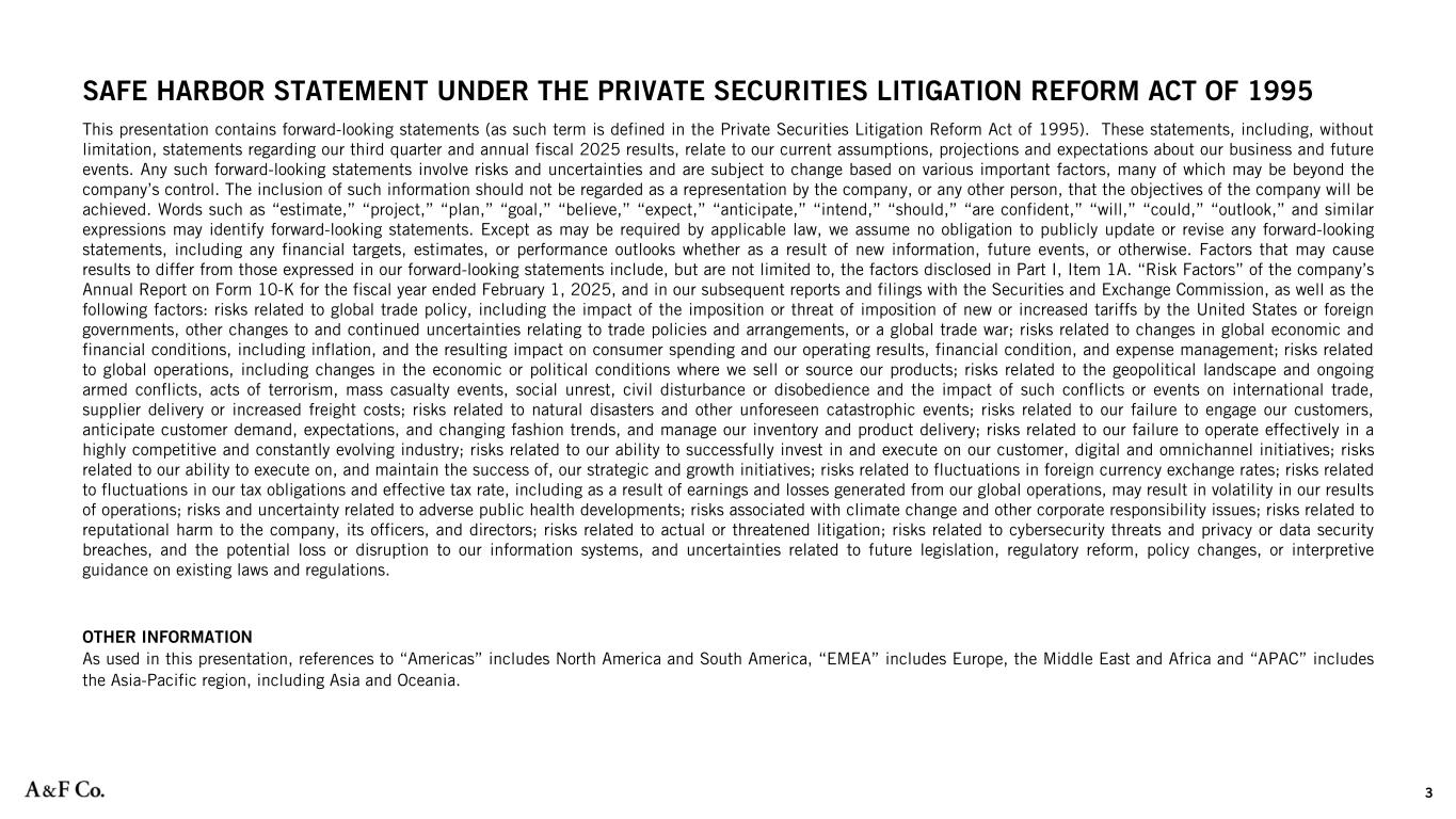 | Safe Harbor Statement Under the Private Securities Litigation Reform Act of 1995 | ||