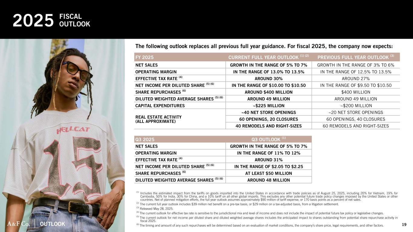The following outlook replaces all previous full year guidance. For fiscal 2025, the company now expects: | ||||||||