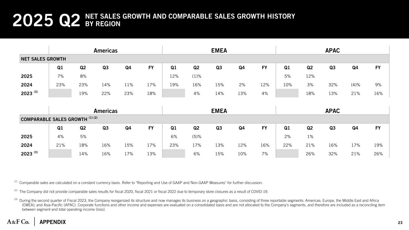 (2) Comparable sales are calculated on a constant currency basis. Refer to "REPORTING AND USE OF GAAP AND NON-GAAP MEASURES," for further discussion. | |||||||||||||||||||||||||||||||||||||||||