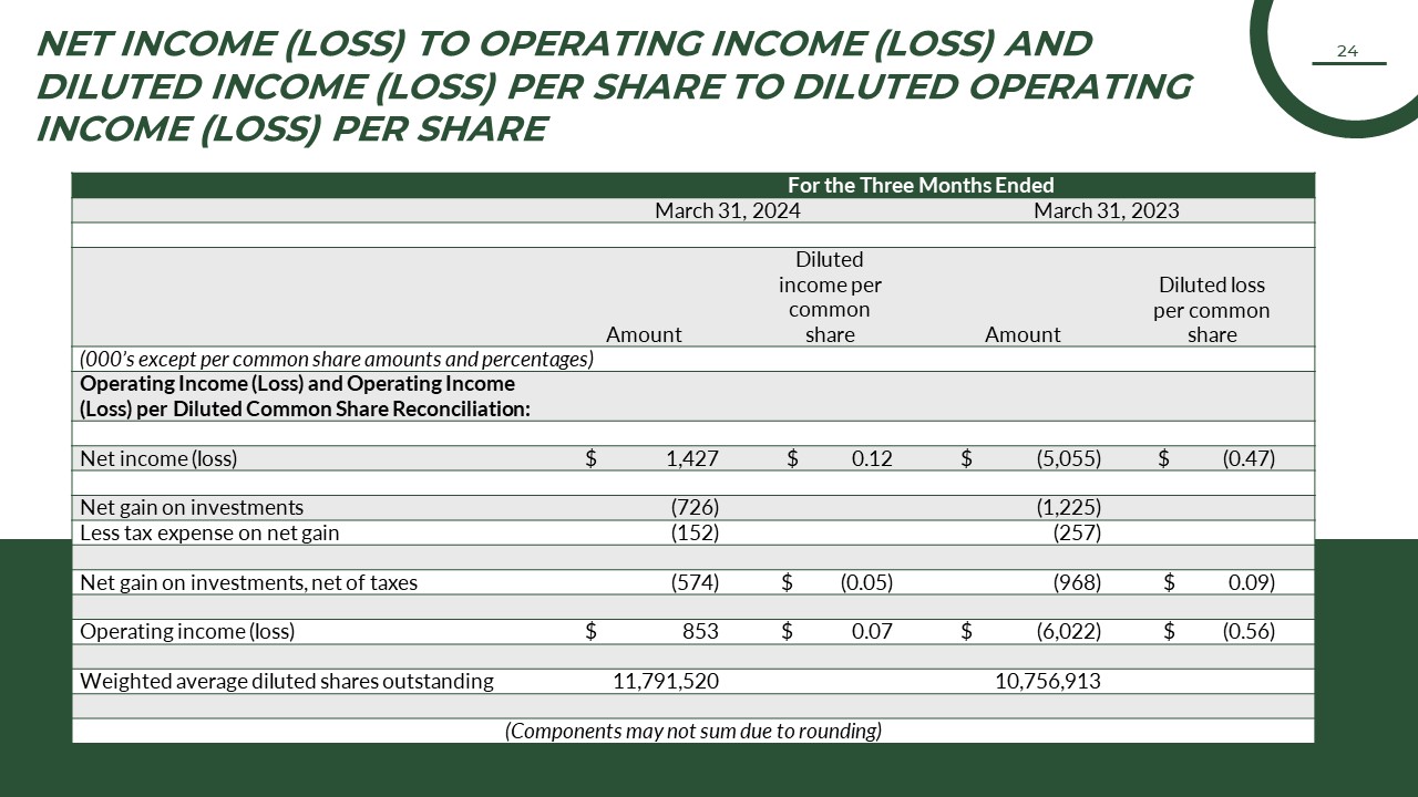 announced on April 29, 2024, and that the Company has prepared an investor presentation (the “Presentation Materials”) that can be accessed through the Investor Relations/Events & Presentations section of the Company website