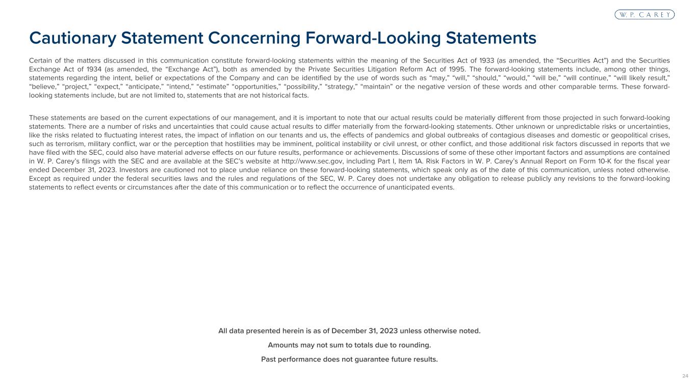 EX-99.3 4 wpc2023q4investorpresent.htm EX-99.3 wpc2023q4investorpresent