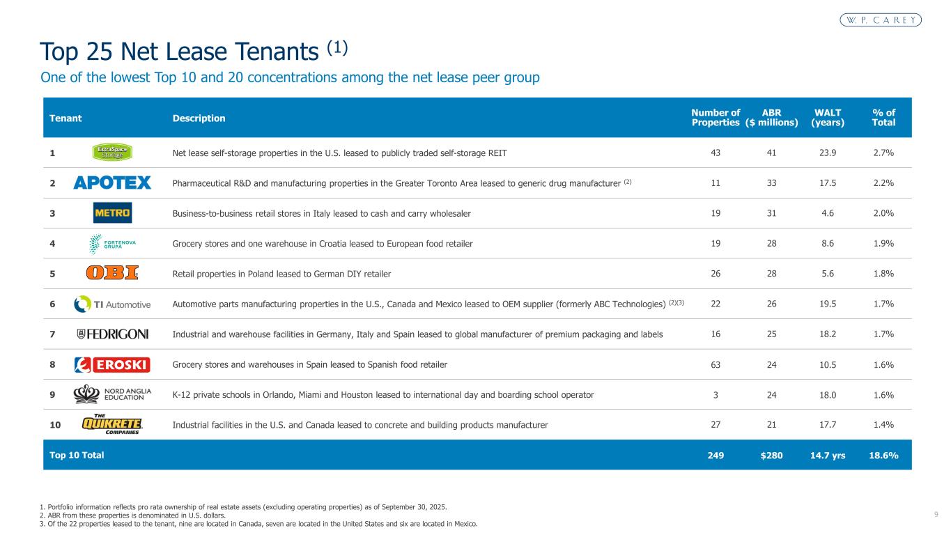W.W. P. Carey Inc.2025年9月30日決算発表 8-K - 2