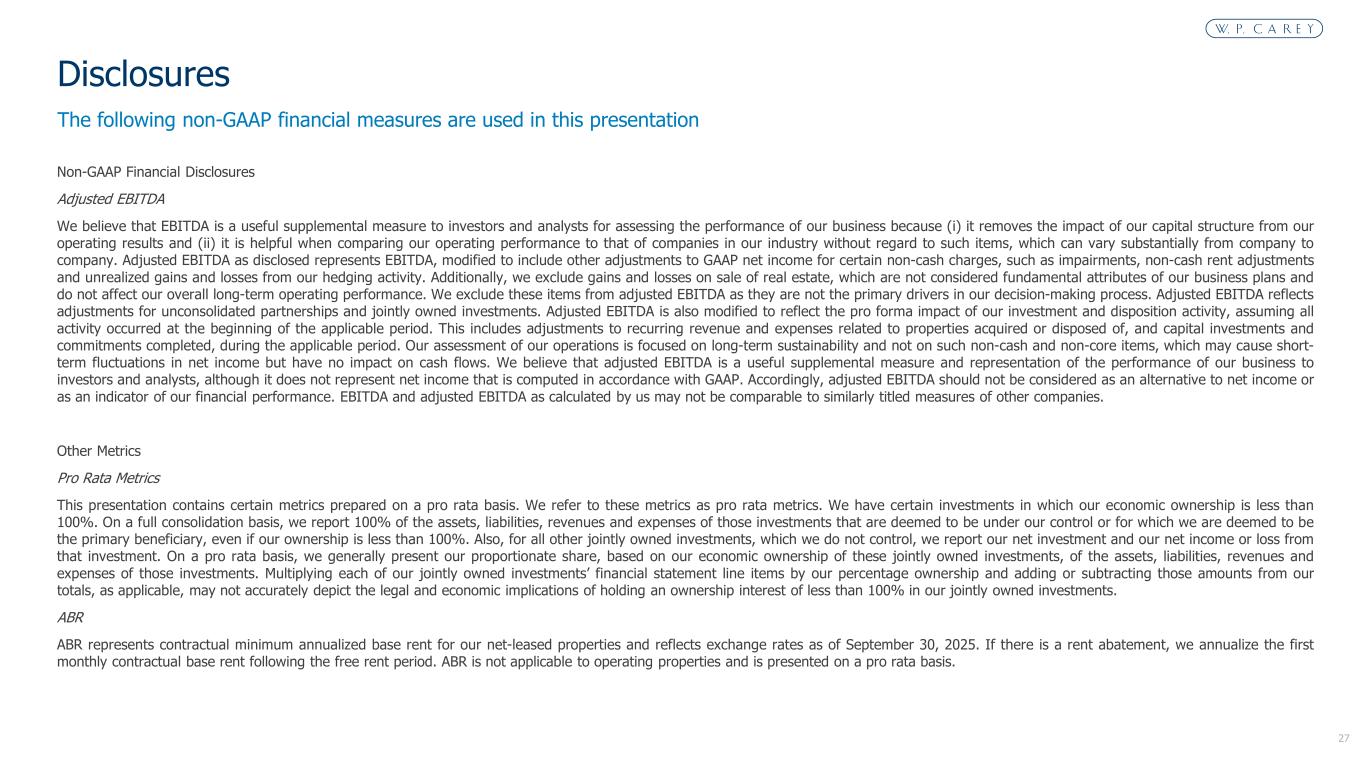 2025年10月28日、当社は第3四半期の投資家向けプレゼンテーションをウェブサイト(http://www.wpcarey.com)に掲載した。投資家向けプレゼンテーションのコピーも別紙99.3として添付されている。