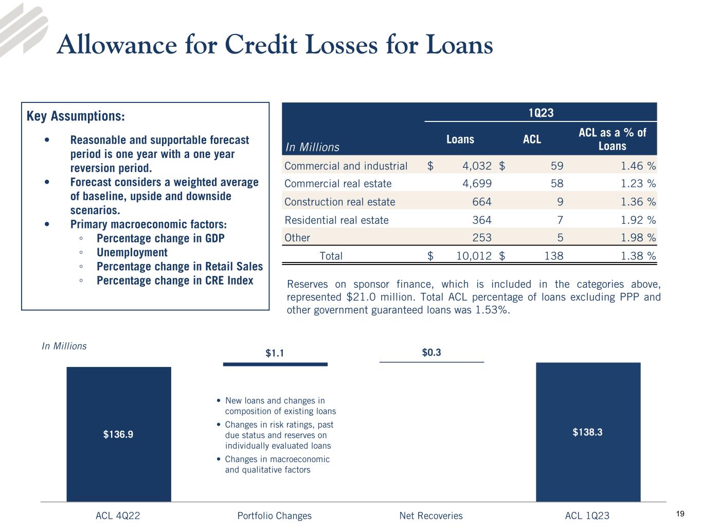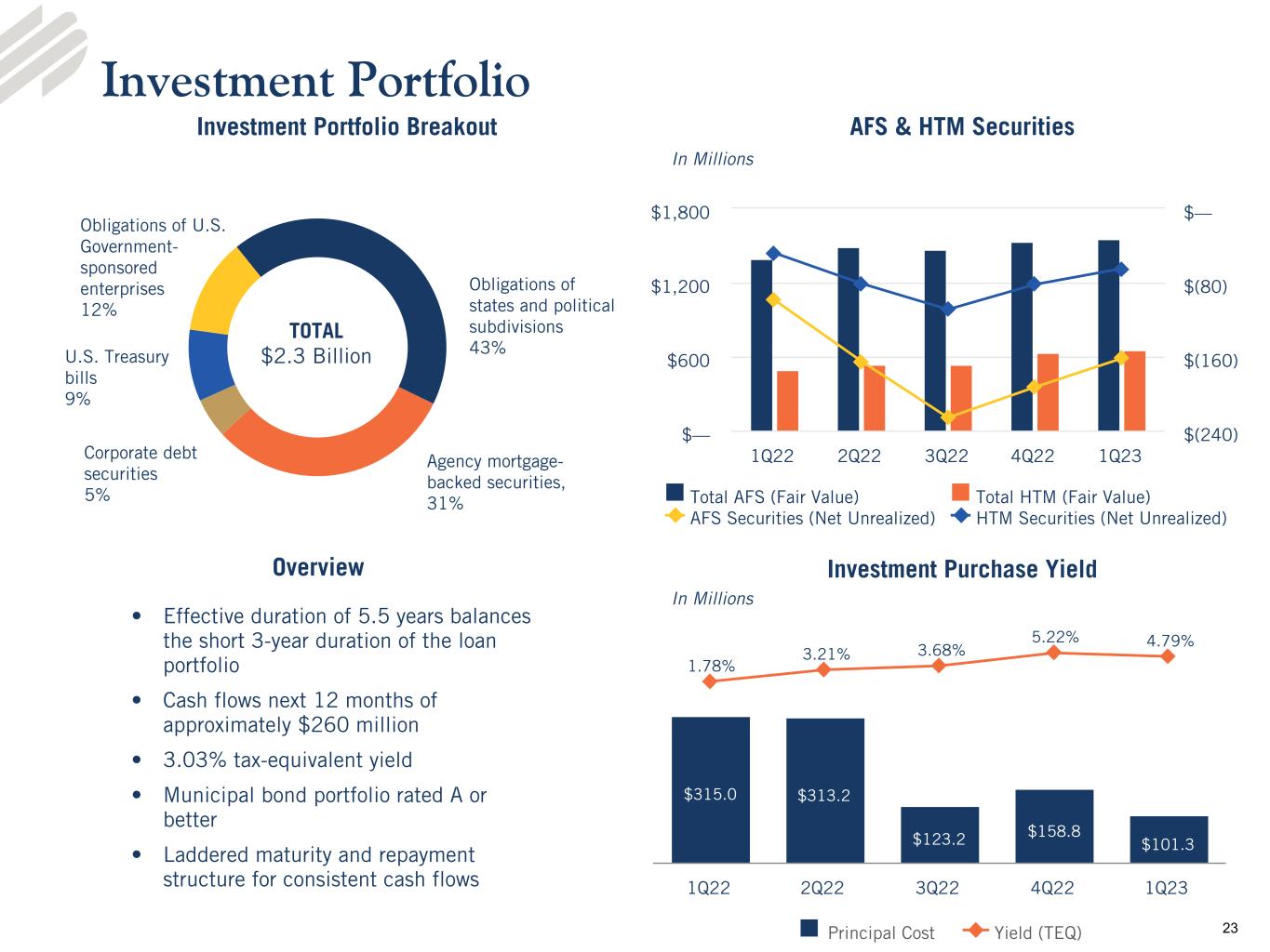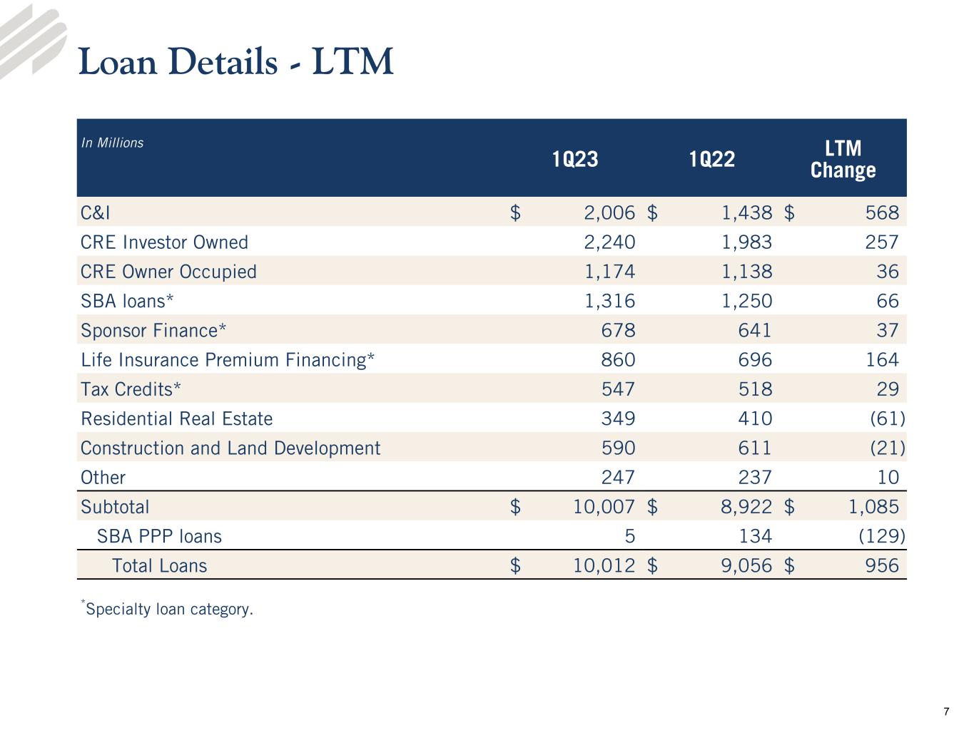 •Loans - Loans totaled $10.0 billion at March 31, 2023, an increase of $274.8 million, or 11.4% on an annualized basis, from the linked quarter and an increase of $955.8 million from the prior year period. Average loans totaled $9.8 billion for the quarter ended March 31, 2023, compared to $9.4 billion and $9.0 billion for the linked and prior year quarters, respectively.