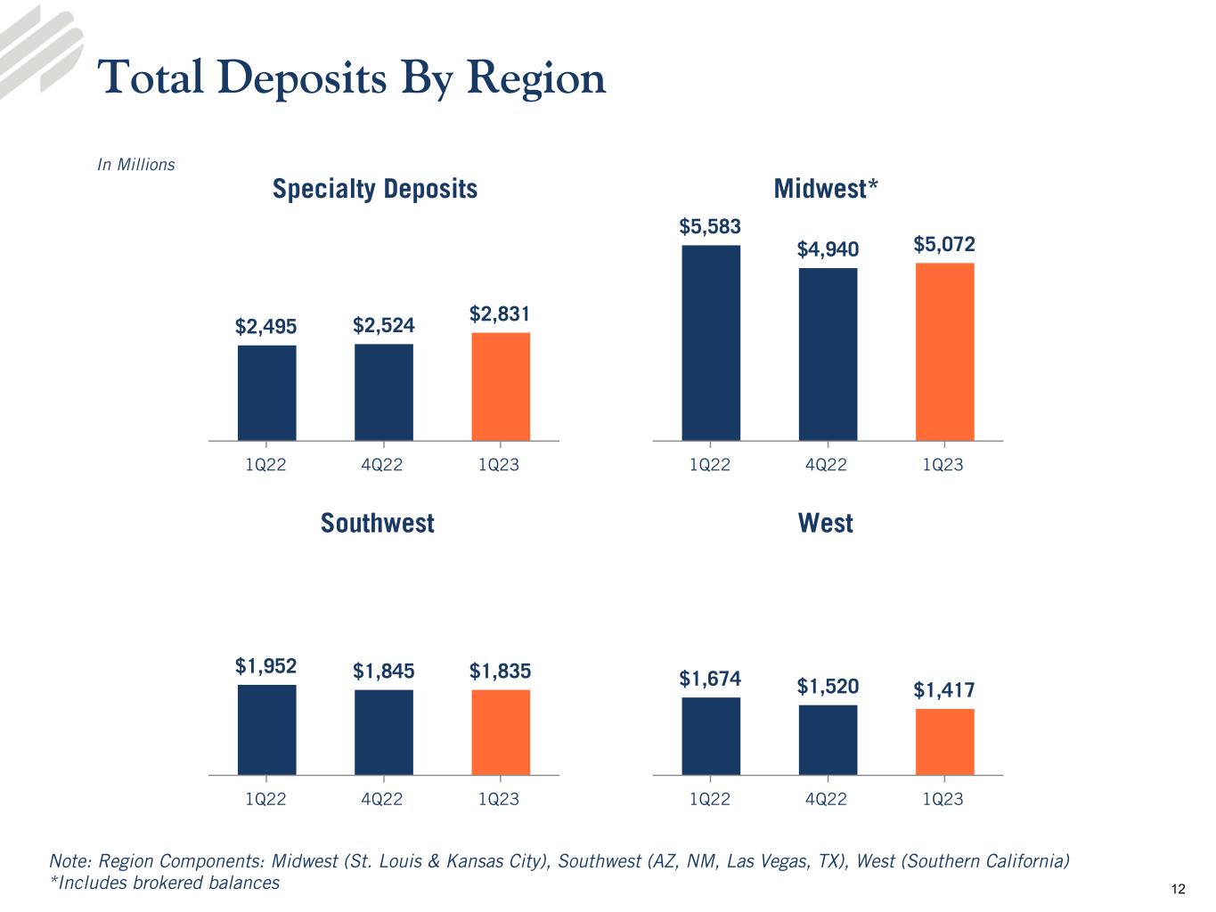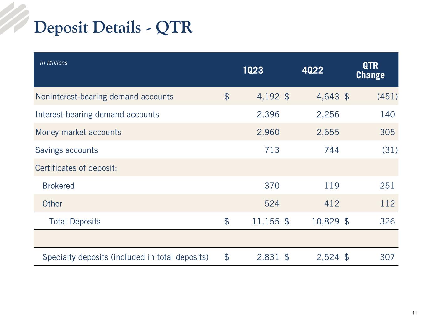 •Total deposits of $11.2 billion, quarterly increase of $325.5 million