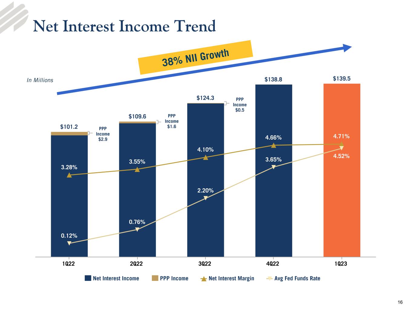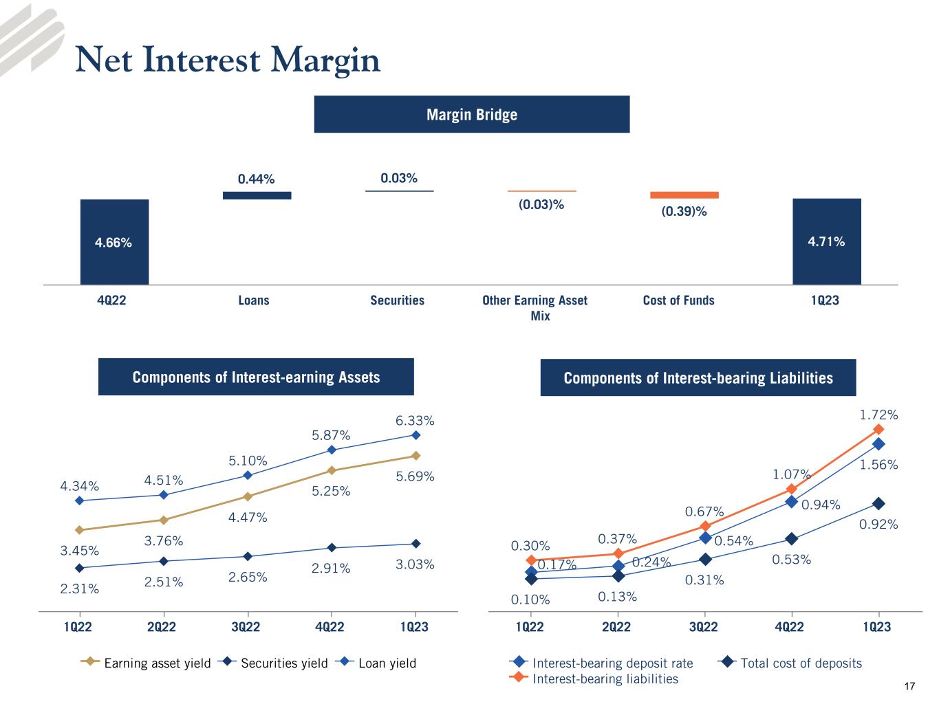 •Net interest margin of 4.71%, quarterly increase of five basis points