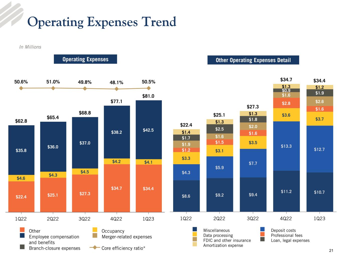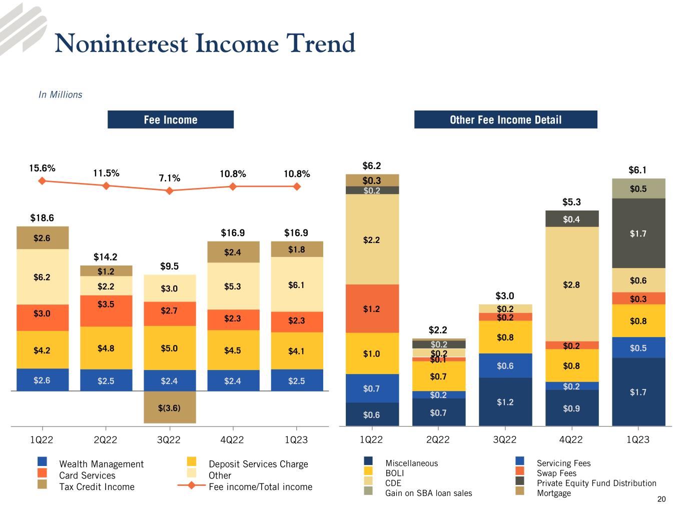 •Noninterest income - Noninterest income of $16.9 million for the first quarter 2023 was stable compared to the linked quarter and decreased $1.7 million from the prior year quarter. The decline from the prior year quarter was primarily due to a decrease in customer swap fee income, card services revenue and tax credit income. Lower transaction volumes led to the decrease in customer swap fee income and tax credit income, and the Durbin Amendment cap on debit card income limited card services revenue since July 1, 2022.