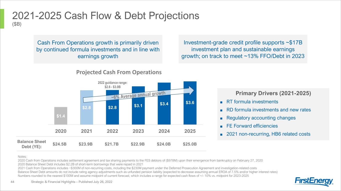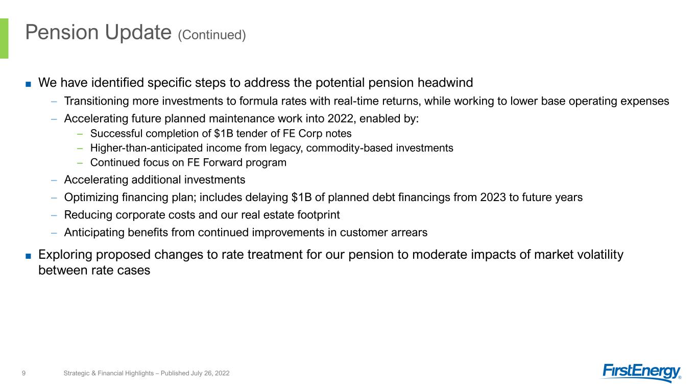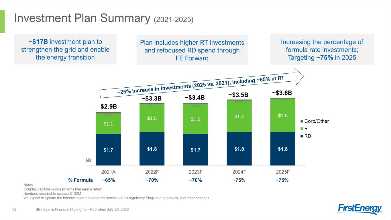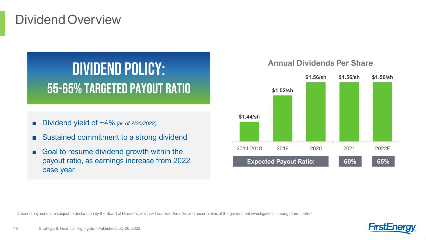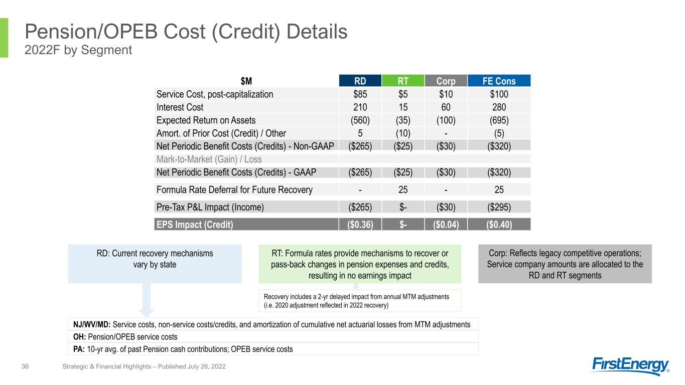 2022年第2四半期および累計の業績には、特定の会計方針の変更の影響、同社が以前に承認した規定に基づきオハイオ州の顧客に提供した料金クレジット、2021年末に完了した普通株融資取引および2022年5月31日に完了したファーストエナジートランスミッション社の少数株主持分の売却に関する希薄化が反映されています。