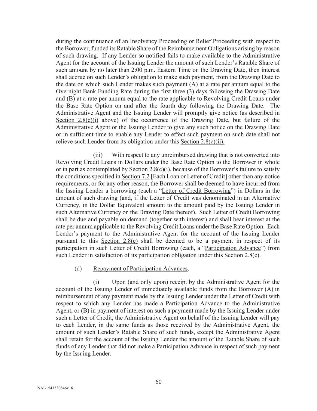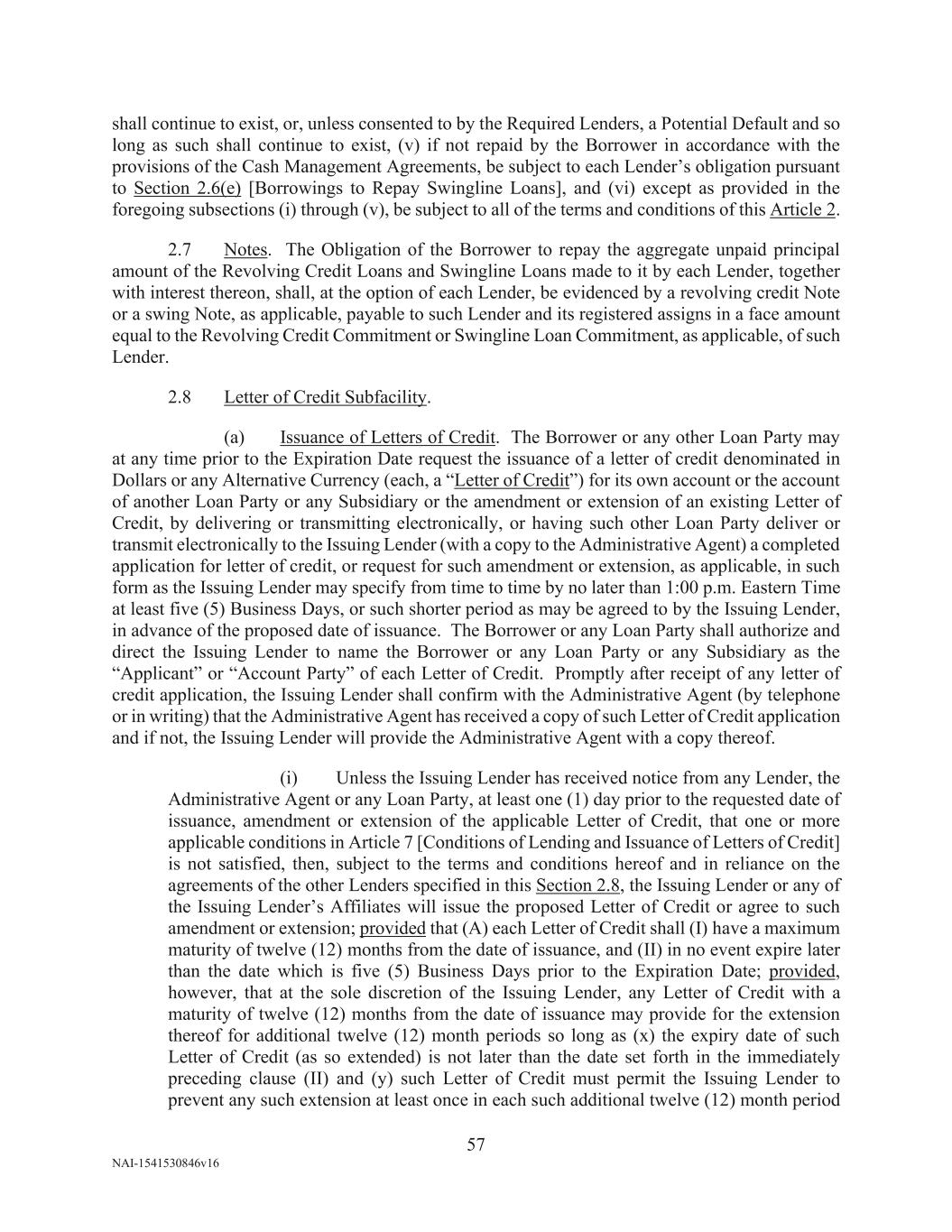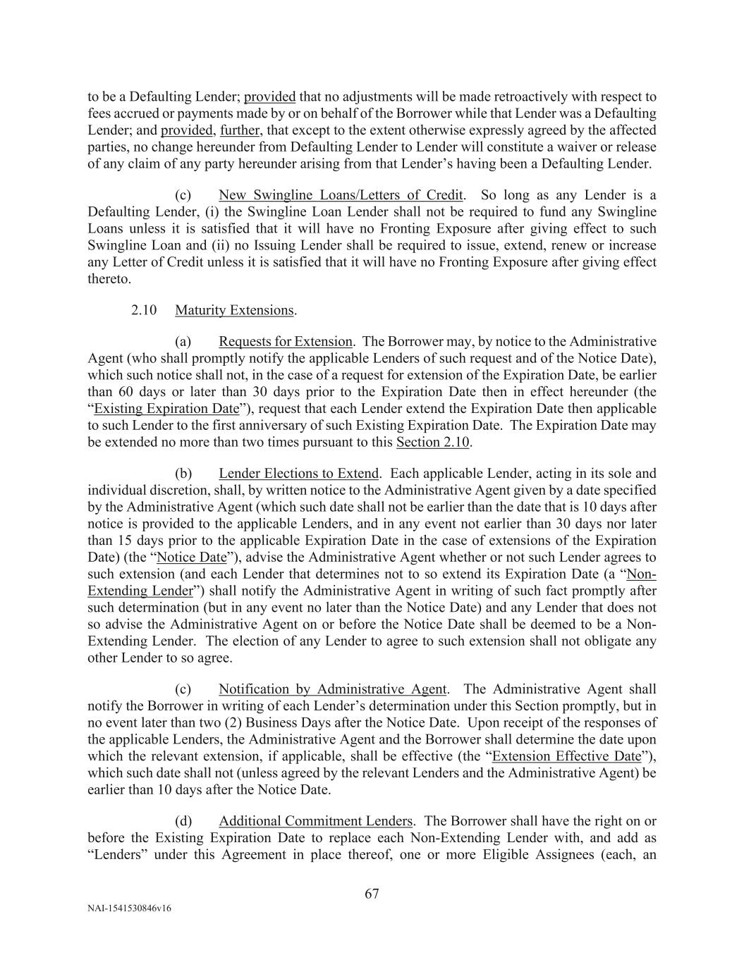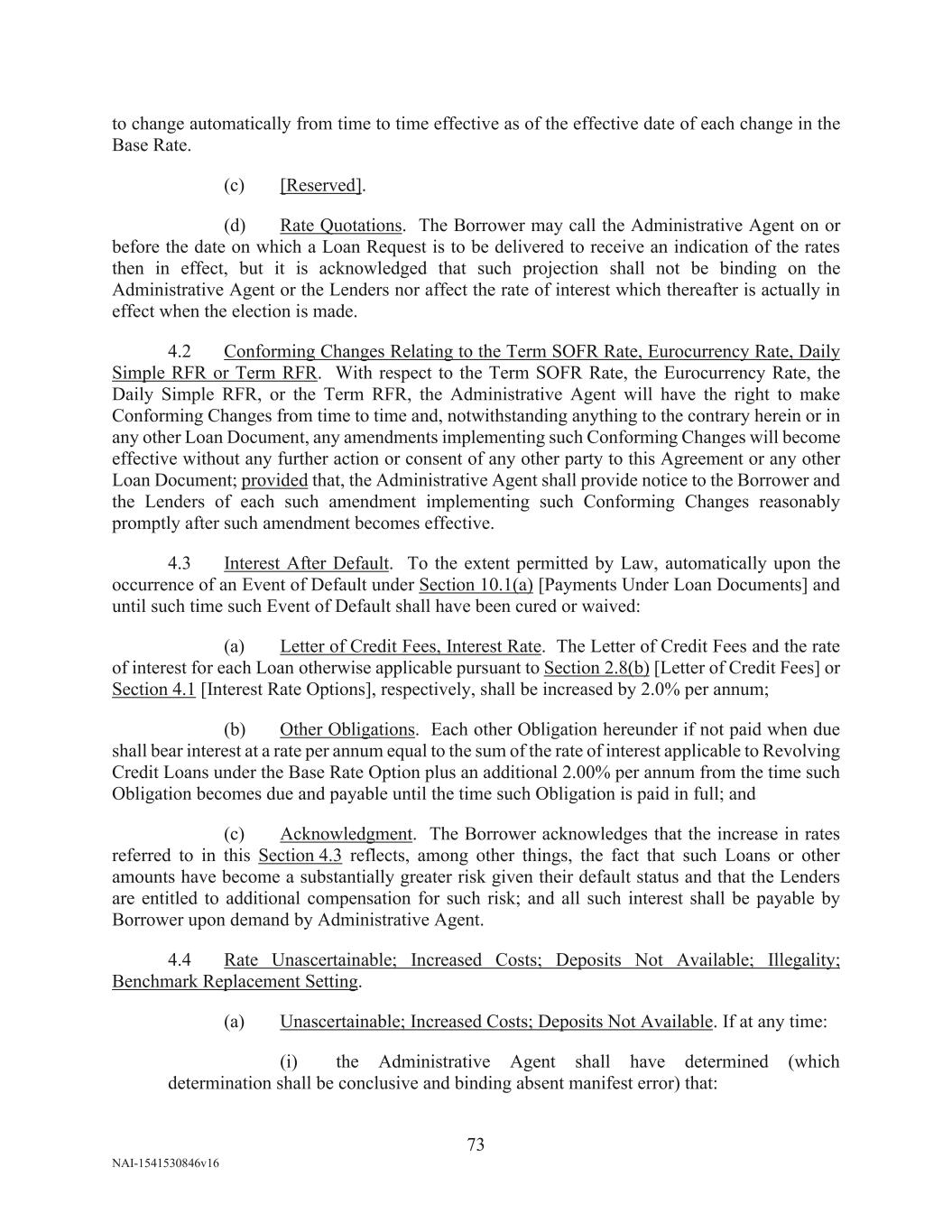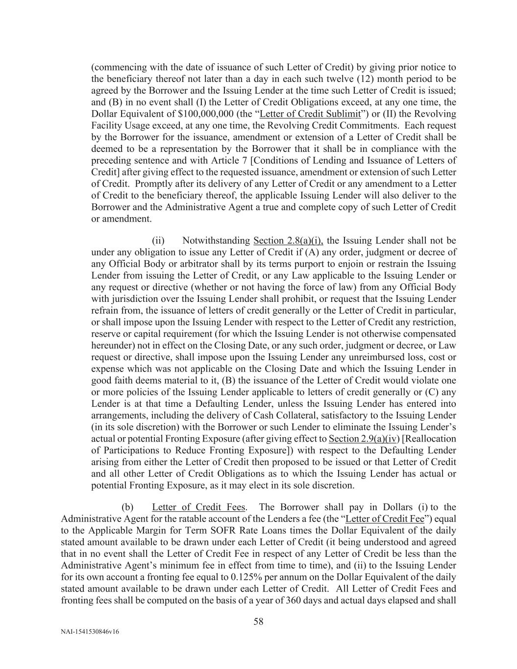 NAI-1541530846v16 TABLE OF CONTENTS (continued) Page ARTICLE 1 CERTAIN DEFINITIONS ................................................................................... 1 1.1 Certain Definitions ................................................................................................. 1 1.2 Construction ......................................................................................................... 48 1.3 Accounting Principles; Changes in GAAP; Times and Dates for Performance ......................................................................................................... 49 1.4 Benchmark Replacement Notification; Rates ...................................................... 50 1.5 Exchange Rates; Currency Equivalents. .............................................................. 50 ARTICLE 2 REVOLVING CREDIT AND SWINGLINE LOAN FACILITIES ............... 51 2.1 Revolving Credit Commitments. ......................................................................... 51 2.2 Nature of Lenders’ Obligations with Respect to Revolving Credit Loans .......... 51 2.3 Commitment Fees ................................................................................................ 52 2.4 Termination or Reduction of Revolving Credit Commitments ........................... 52 2.5 Revolving Credit Loan Requests; Loan Conversions and Renewals; Swingline Loan Requests. .................................................................................... 53 2.6 Making Revolving Credit Loans and Swingline Loans; Presumptions by the Administrative Agent; Repayment of Revolving Credit Loans; Borrowings to Repay Swingline Loans. .............................................................. 54 2.7 Notes .................................................................................................................... 57 2.8 Letter of Credit Subfacility. ................................................................................. 57 2.9 Defaulting Lenders............................................................................................... 64 2.10 Maturity Extensions. ............................................................................................ 67 2.11 Incremental Loans. ............................................................................................... 69 ARTICLE 3 [RESERVED] ....................................................................................................... 71 ARTICLE 4 INTEREST RATES ............................................................................................. 71 4.1 Interest Rate Options............................................................................................ 71 4.2 Conforming Changes Relating to the Term SOFR Rate, Eurocurrency Rate, Daily Simple RFR or Term RFR ................................................................ 73 4.3 Interest After Default ........................................................................................... 73 4.4 Rate Unascertainable; Increased Costs; Deposits Not Available; Illegality; Benchmark Replacement Setting. ........................................................................ 73 4.5 Selection of Interest Rate Options ....................................................................... 77 4.6 Minimum Interest; Swiss Withholding Tax ......................................................... 78 ARTICLE 5 PAYMENTS; TAXES; YIELD MAINTENANCE .......................................... 78
