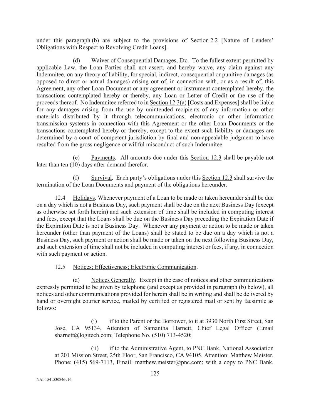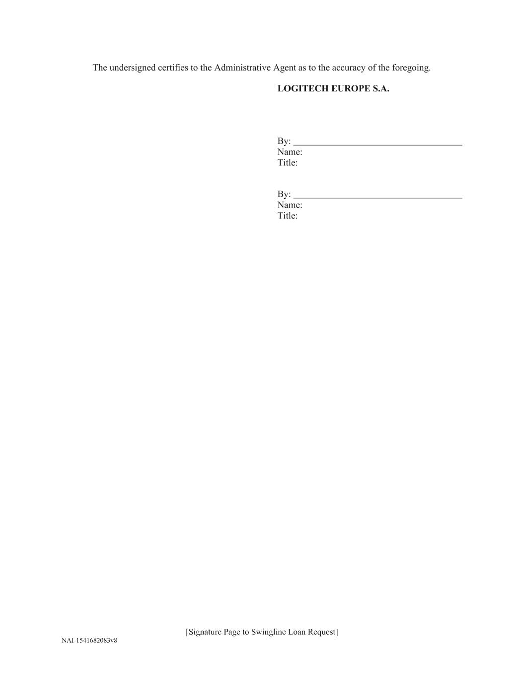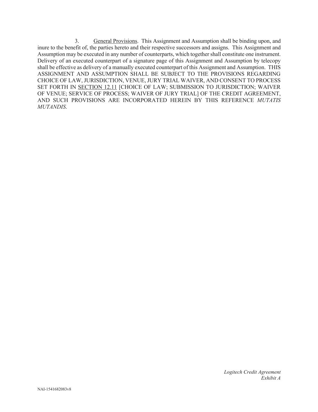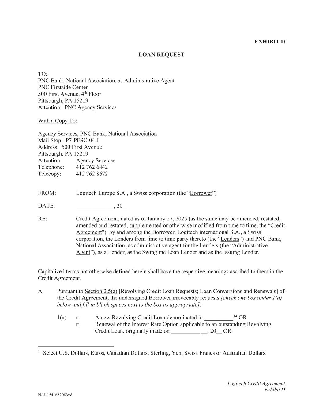 NAI-1541530846v16 $750,000,000 REVOLVING CREDIT FACILITY CREDIT AGREEMENT by and among LOGITECH EUROPE S.A., as Borrower, and LOGITECH INTERNATIONAL S.A., as Parent, and THE LENDERS PARTY HERETO and PNC BANK, NATIONAL ASSOCIATION, as Administrative Agent, Swingline Loan Lender and Issuing Lender, and PNC CAPITAL MARKETS LLC and BOFA SECURITIES, INC., as Joint Lead Arrangers and Joint Bookrunners Dated as of January 27, 2025
