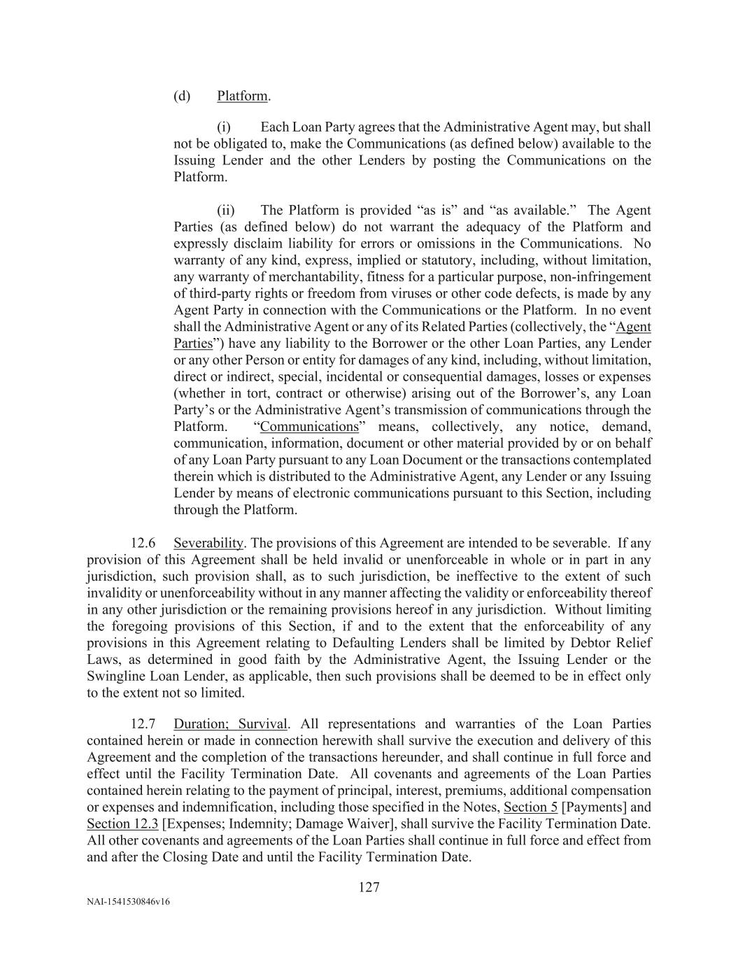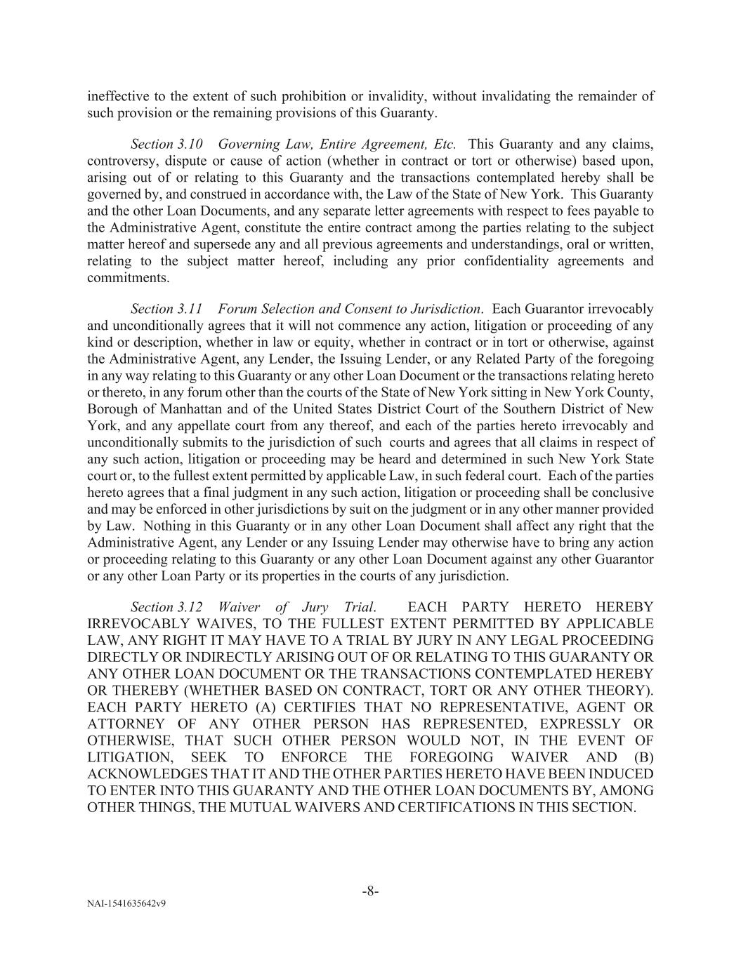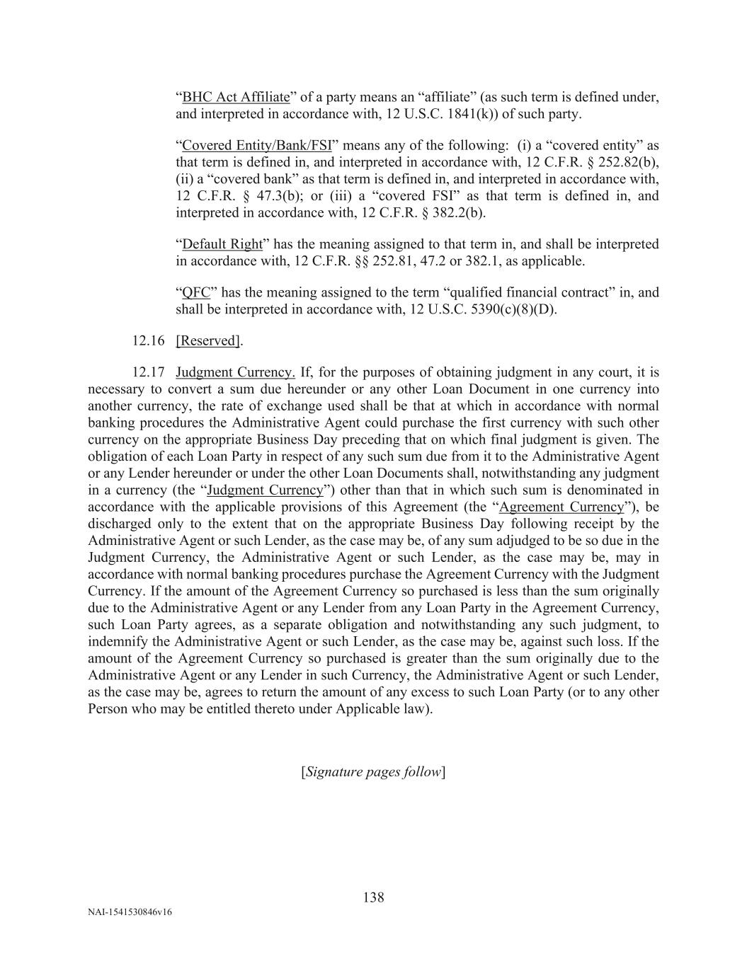 NAI-1541530846v16 TABLE OF CONTENTS (continued) Page 12.10 Counterparts; Integration; Effectiveness; Electronic Execution. ....................... 134 12.11 Choice of Law; Submission to Jurisdiction; Waiver of Venue, Service of Process; Waiver of Jury Trial. ........................................................................... 135 12.12 Mutual Negotiations........................................................................................... 136 12.13 Acknowledgement and Consent to Bail-In of Affected Financial Institutions.......................................................................................................... 136 12.14 USA PATRIOT Act Notice ............................................................................... 137 12.15 Acknowledgement Regarding any Supported QFCs. ........................................ 137 12.16 [Reserved] .......................................................................................................... 138 12.17 Judgment Currency ............................................................................................ 138