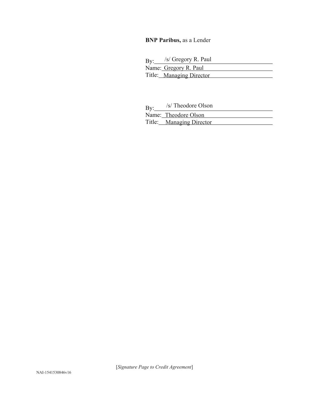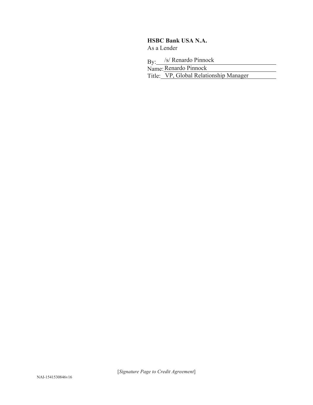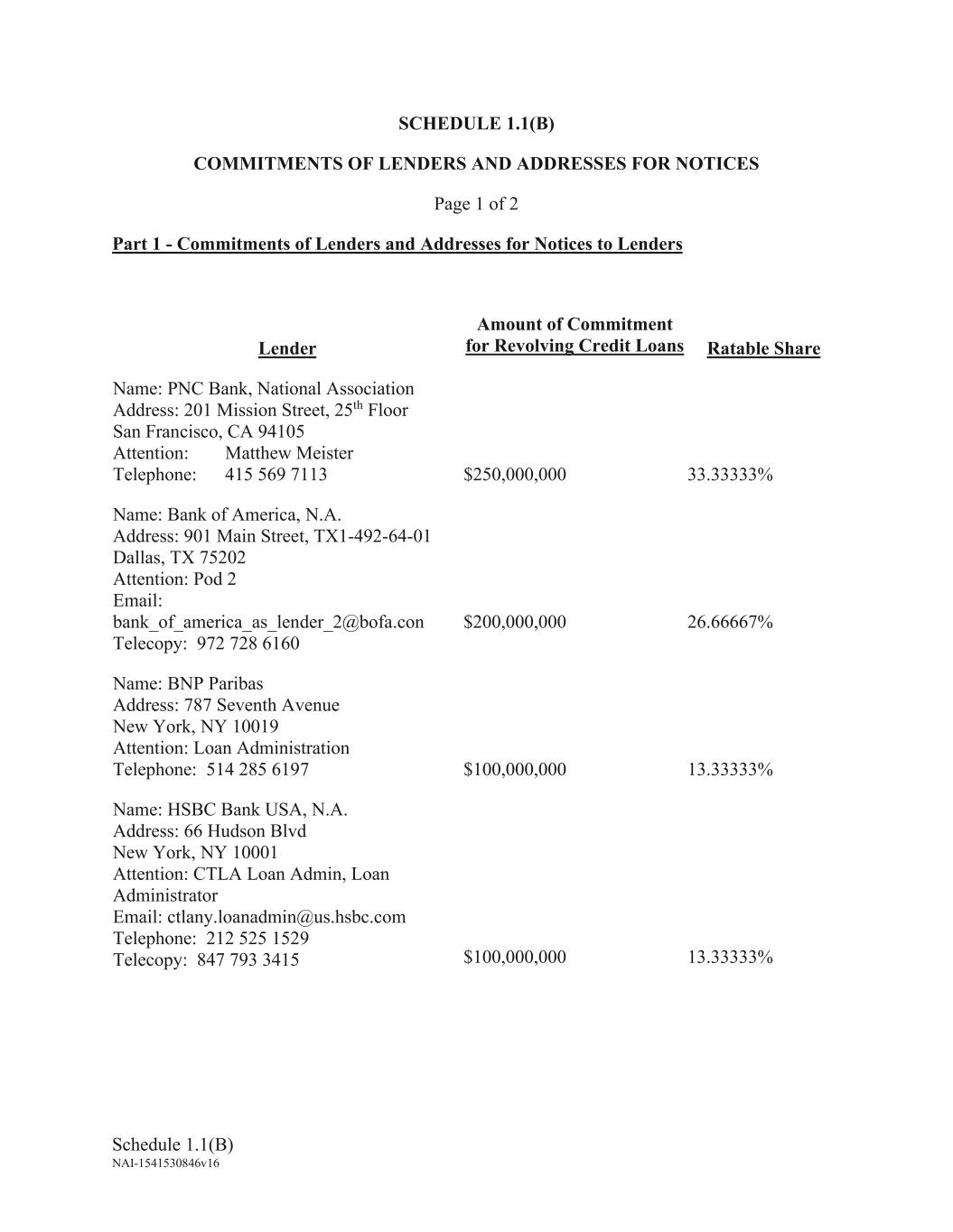 NAI-1541530846v16 LIST OF SCHEDULES AND EXHIBITS SCHEDULES SCHEDULE 1.1(B) - COMMITMENTS OF LENDERS AND ADDRESSES FOR NOTICES EXHIBITS EXHIBIT A - ASSIGNMENT AND ASSUMPTION AGREEMENT EXHIBIT B - REVOLVING CREDIT NOTE EXHIBIT C - SWINGLINE LOAN NOTE EXHIBIT D - LOAN REQUEST EXHIBIT E - SWINGLINE LOAN REQUEST EXHIBIT F - COMPLIANCE CERTIFICATE