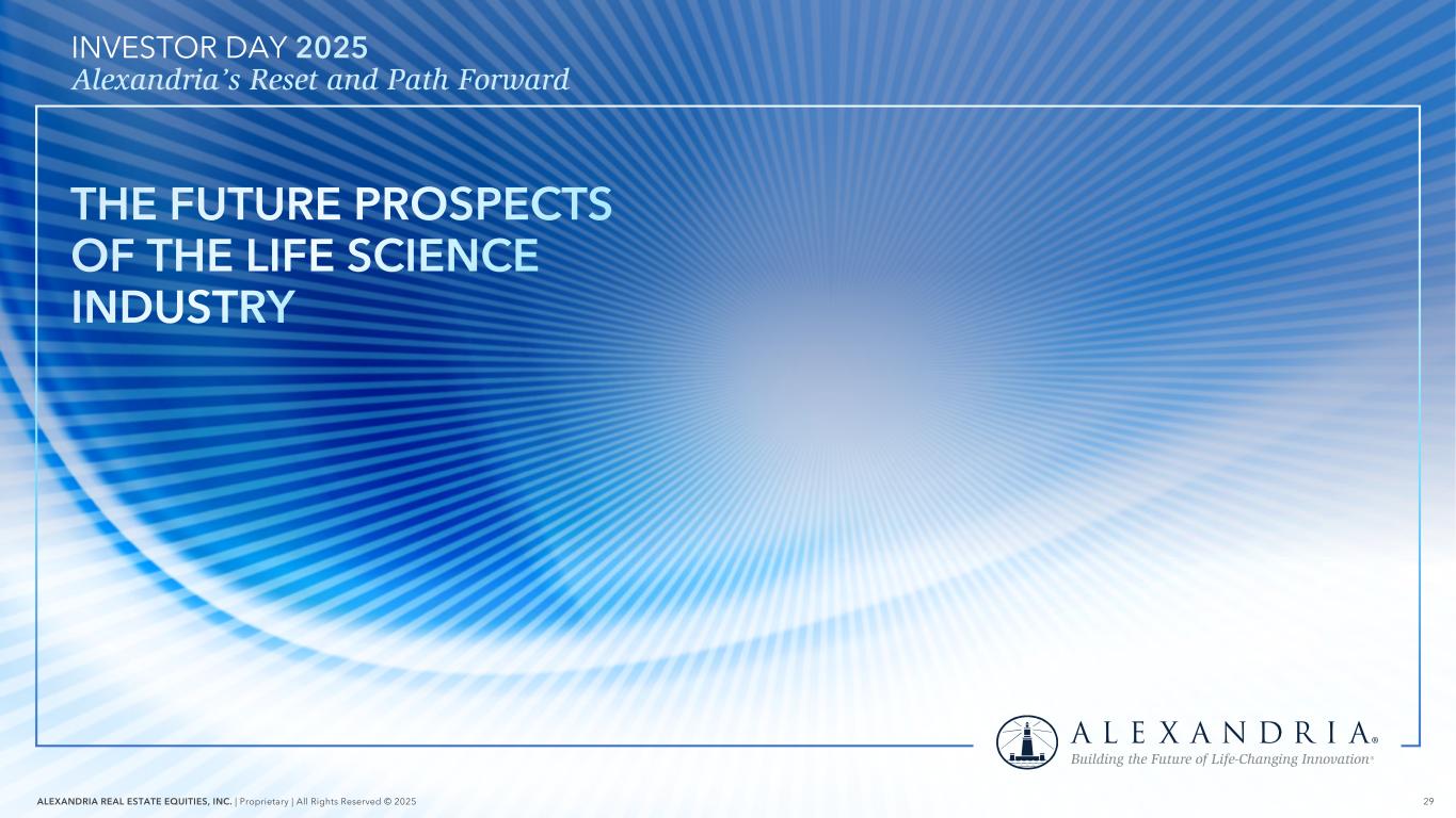 29ALEXANDRIA REAL ESTATE EQUITIES, INC. | Proprietary | All Rights Reserved © 2025 INVESTOR DAY 2025 Alexandria’s Reset and Path Forward