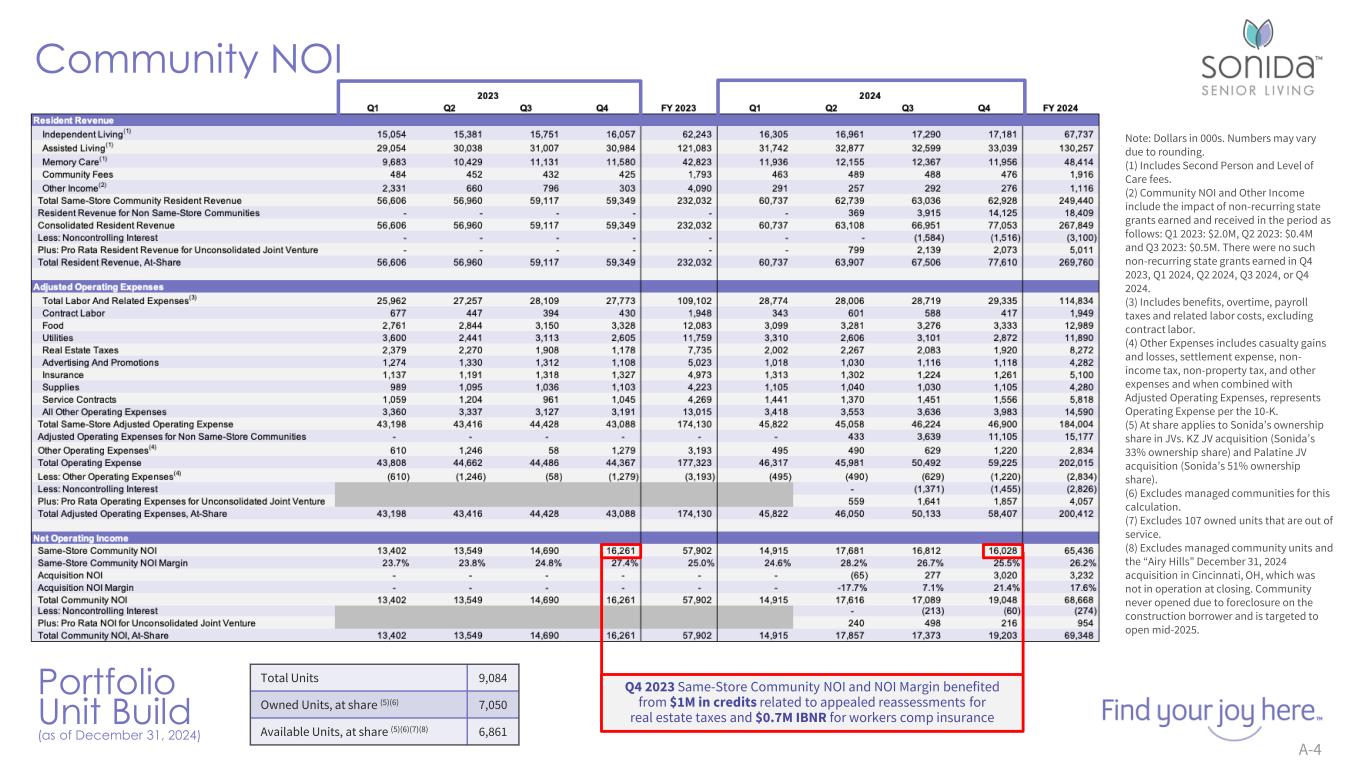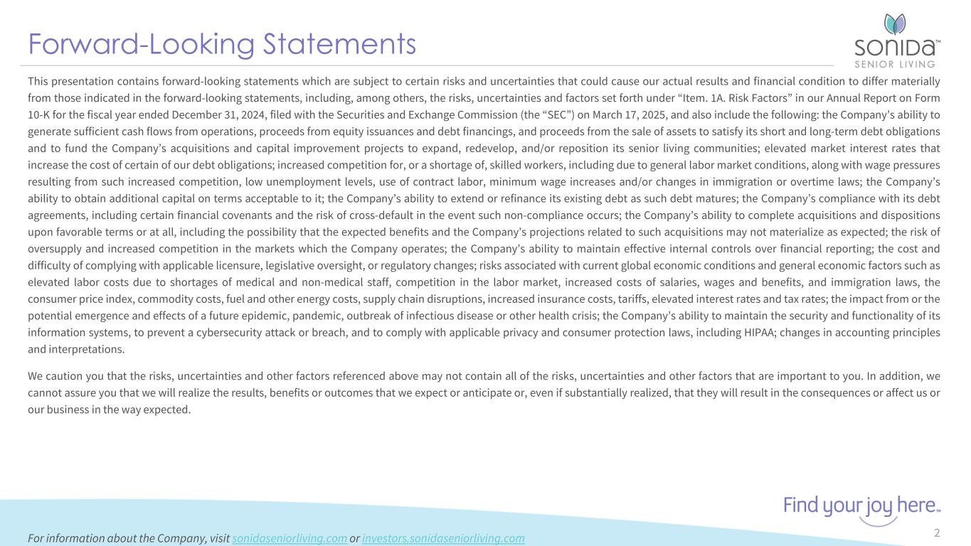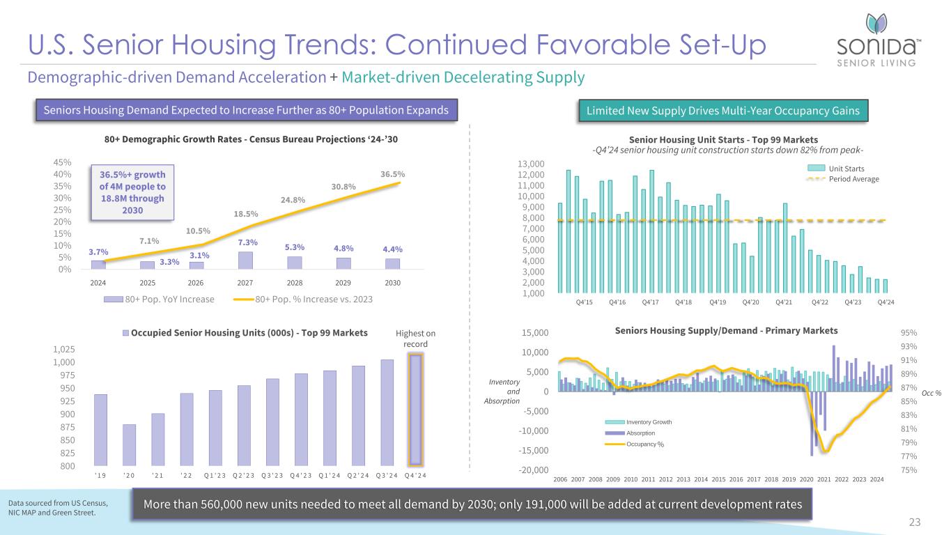 テキサス州ダラス発-2025年3月17日-高齢者向け住宅コミュニティーの所有、運営、投資の大手企業であるソニダ・シニアリビング社(NYSE: SNDA)は本日、第4四半期および2024年12月31日を期末とする通期の業績を発表しました。
