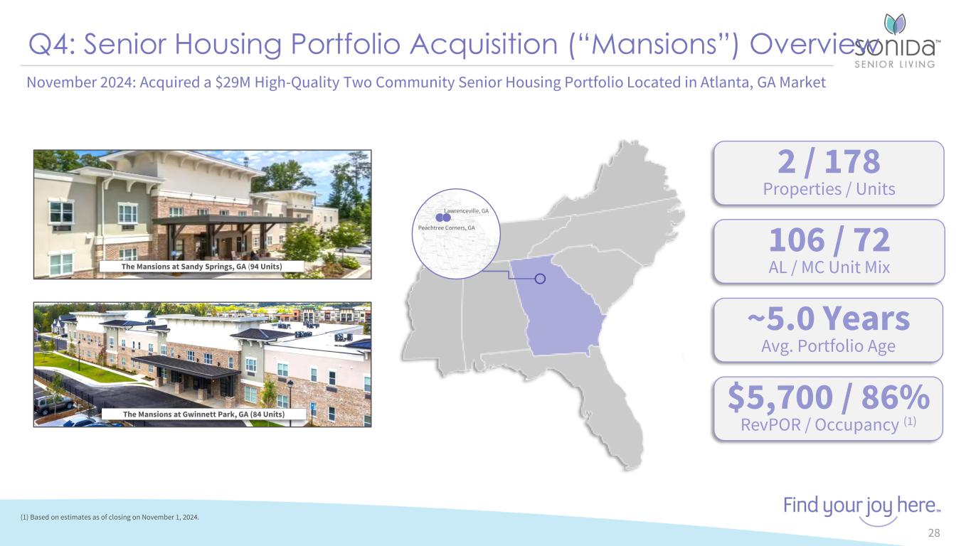 2024年11月、当社はジョージア州アトランタの高齢者向け住宅2棟を2,900万ドルで取得した(以下「アトランタ取得」)。