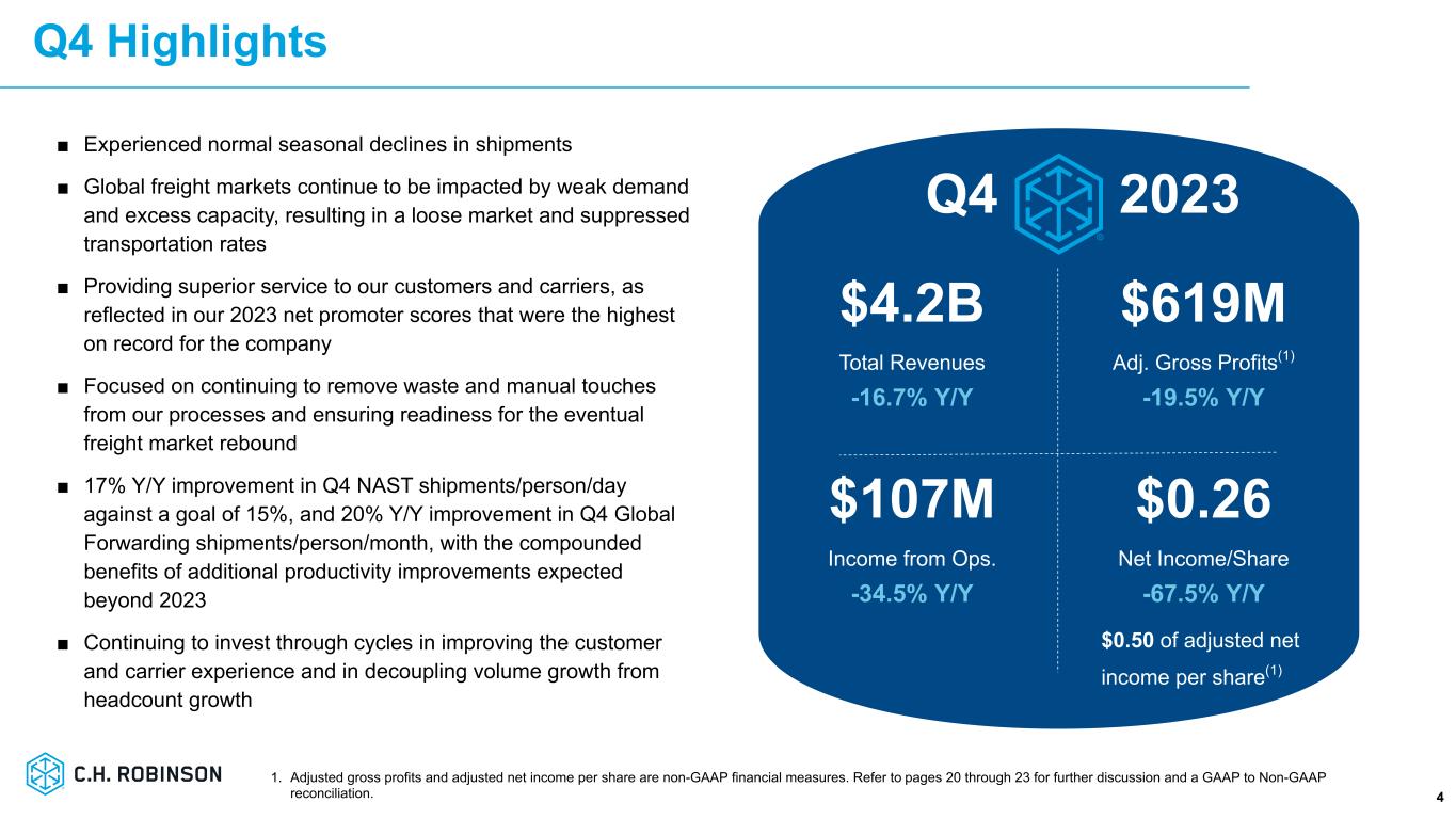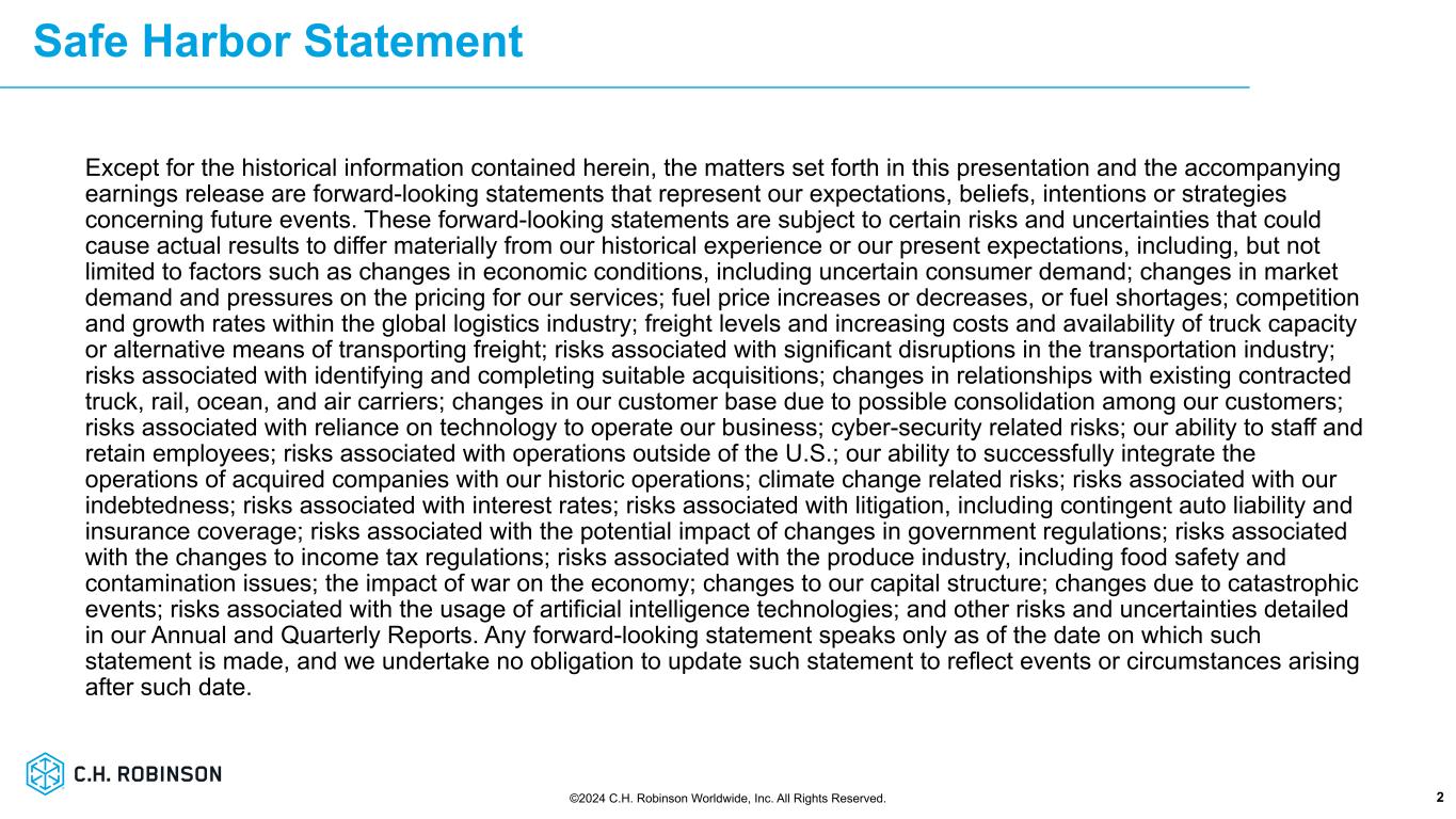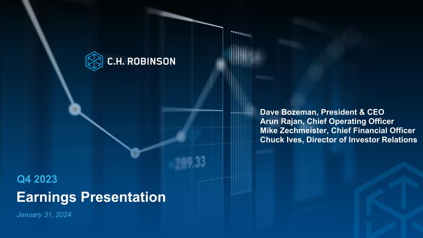 ミネソタ州イーデン・プレーリー、2024年1月31日 - C.H.ロビンソン・ワールドワイド・インク(以下「C.H.ロビンソン」)(Nasdaq: CHRW)は本日、2023年12月31日に終了した四半期決算を発表した。