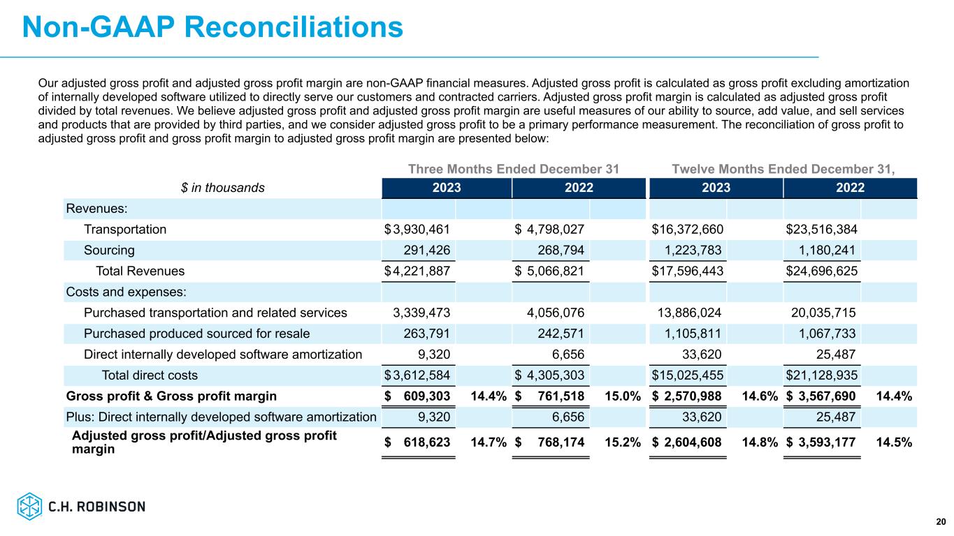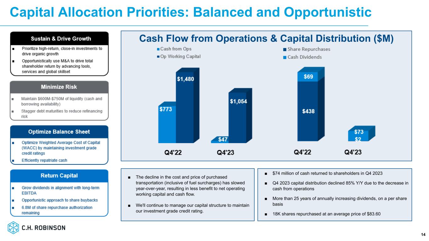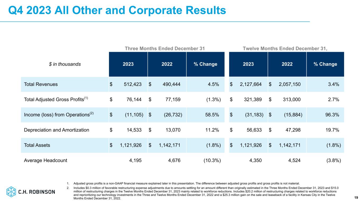 ミネソタ州イーデン・プレーリー、2024年1月31日 - C.H.ロビンソン・ワールドワイド・インク(以下「C.H.ロビンソン」)(Nasdaq: CHRW)は本日、2023年12月31日に終了した四半期決算を発表した。
