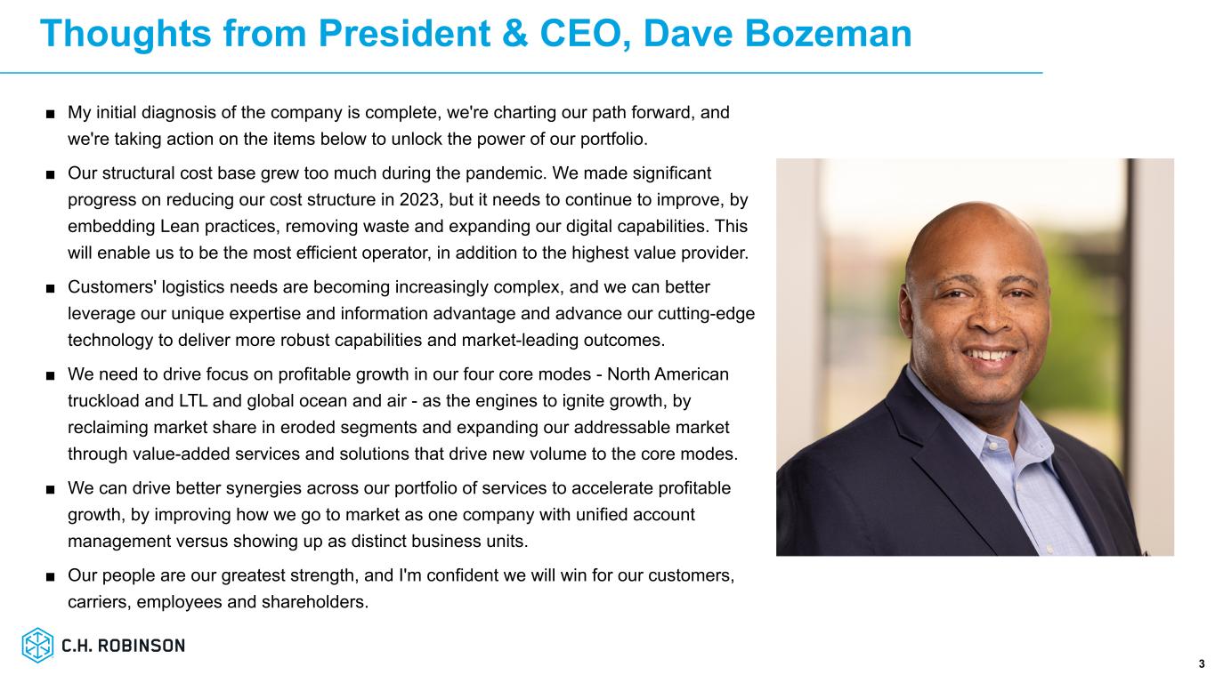 「2023年に別れを告げられることを喜んでいるという点では、同業他社の方々と同じ思いです。2024年にはまだ同じような課題や逆風がありますが、ロビンソンの勝利の文化を再活性化し、ポートフォリオの力を引き出すために行っている仕事に私は興奮しています。私は、価値提案の改善、市場シェアの拡大、成長の加速、構造的コストのさらなる削減、効率性、営業利益率、収益性の改善により、会社の潜在能力をフルに発揮し、株主価値をさらに創造する機会があると考え続けています。ボーズマンは次のように締めくくった。「私たちが力を合わせれば、顧客、輸送会社、従業員、そして株主のために勝利できると確信しています。