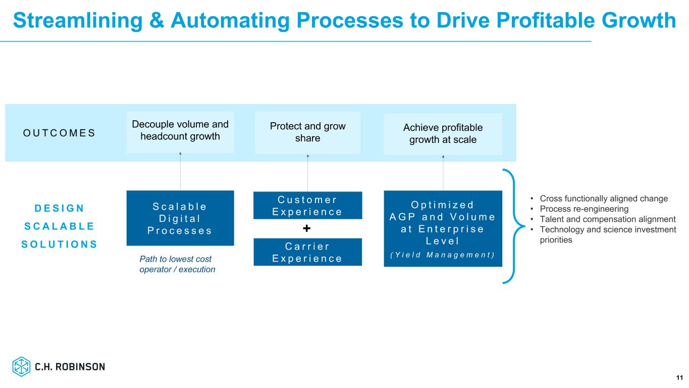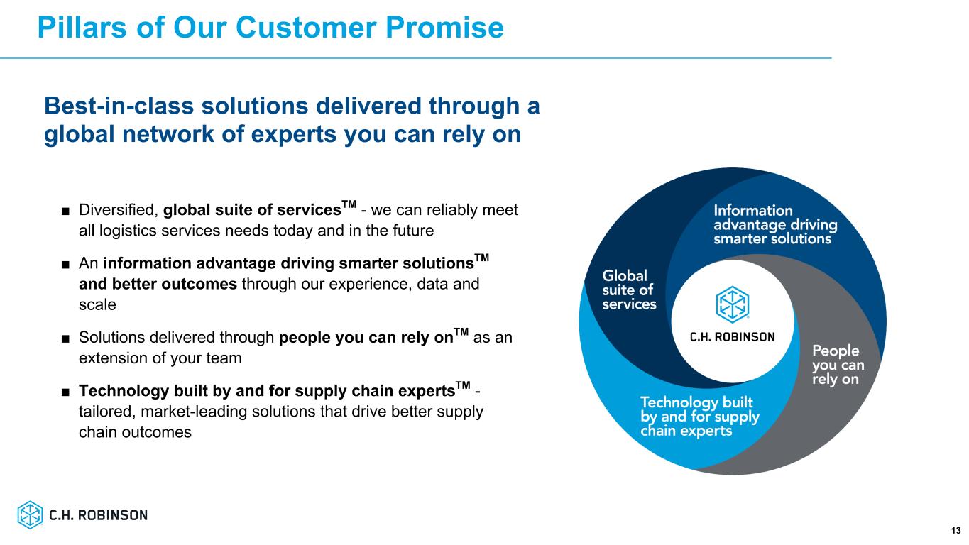 C.H. Robinson solves logistics problems for companies across the globe and across industries, from the simple to the most complex. With $22 billion in freight under management and 19 million shipments annually, we are one of the world’s largest logistics platforms. Our global suite of services accelerates trade to seamlessly deliver the products and goods that drive the world’s economy. With the combination of our multimodal transportation management system and expertise, we use our information advantage to deliver smarter solutions for our more than 90,000 customers and the more than 450,000 contract carriers on our platform. Our technology is built by and for supply chain experts to bring faster, more meaningful improvements to our customers’ businesses. As a responsible global citizen, we are also proud to contribute millions of dollars to support causes that matter to our company, our Foundation and our employees. For more information, visit us at www.chrobinson.com (Nasdaq: CHRW).