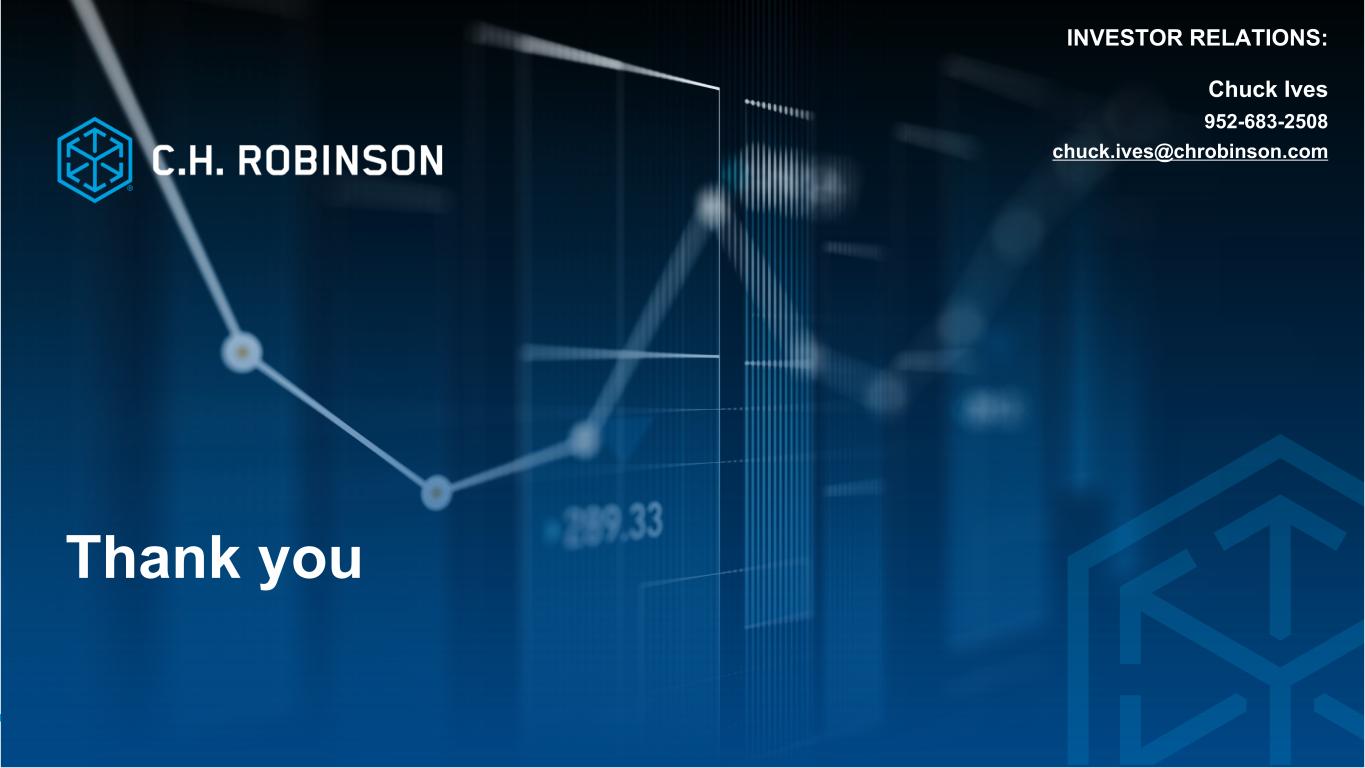 "In what continues to be a difficult environment, our resilient team of freight experts is responding to the challenge and embracing the new operating model and the innovative tools that we continue to arm them with. Our people have a powerful desire to win, and I thank them for their tireless efforts. They continue to be a differentiator for us and for our customers and carriers, and I’m confident in the team's willingness and ability to drive a higher level of discipline in our operational execution. We’re moving in the right direction, and at the same time, everyone understands that we have more work to do," Bozeman concluded.