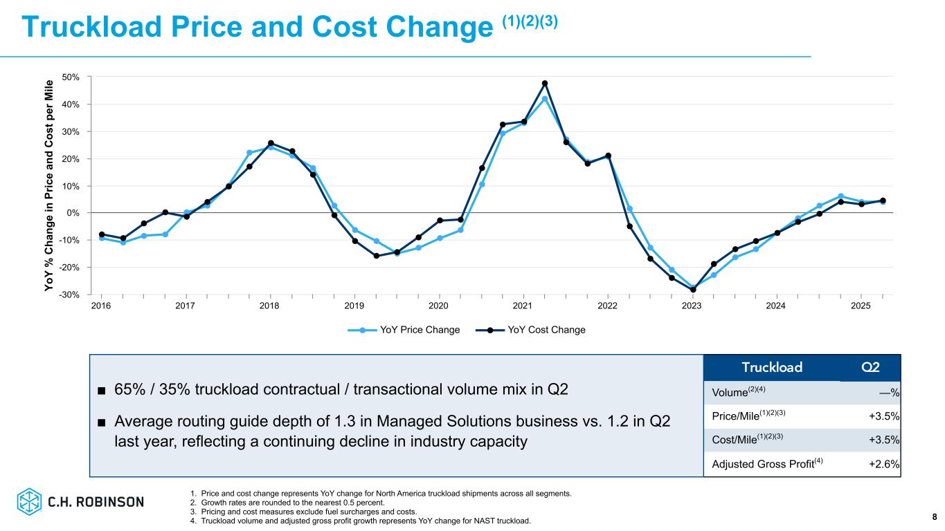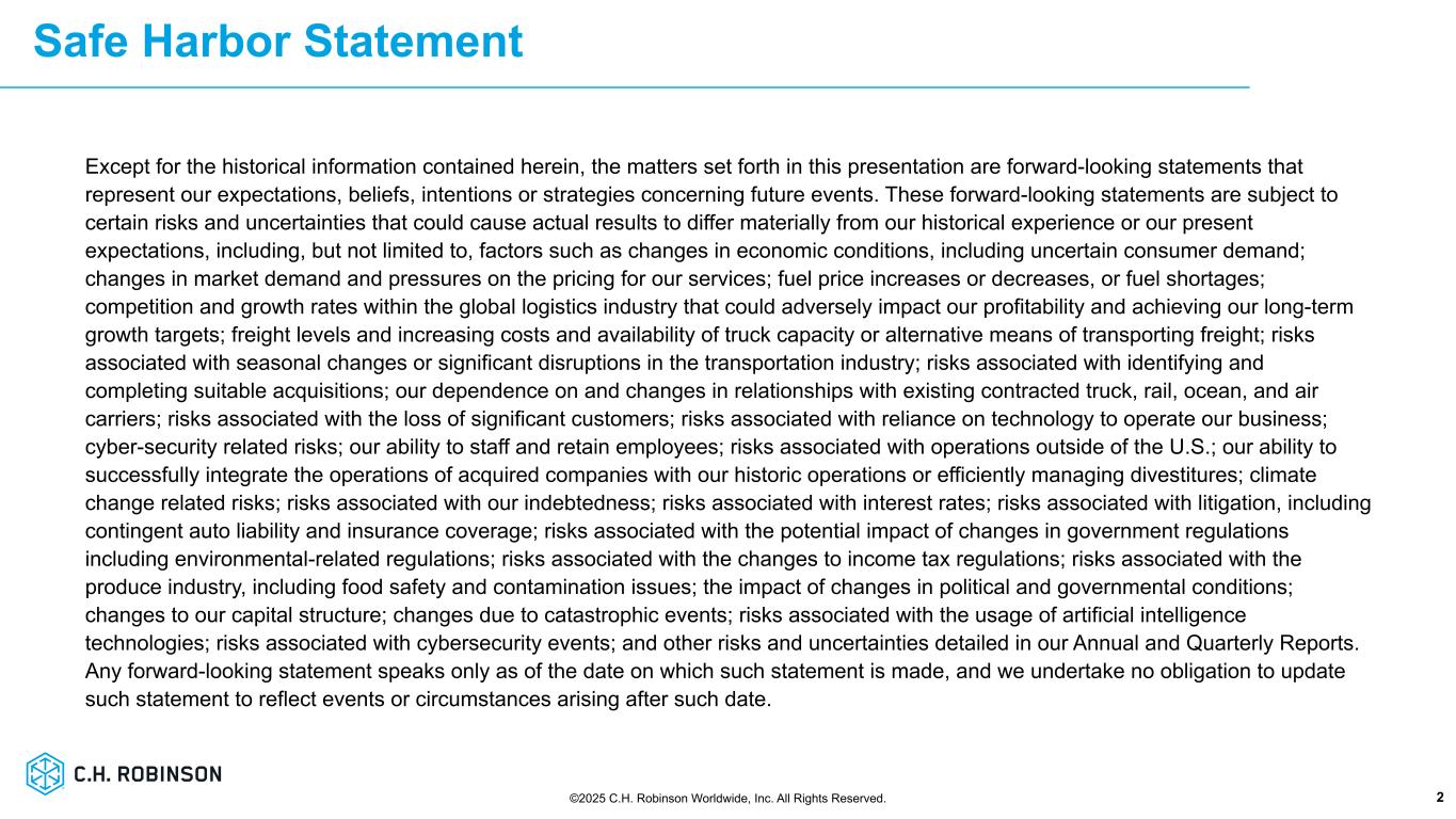 ミネソタ州イーデン・プレーリー、2025年7月30日 - C.H.ロビンソン・ワールドワイド・インク(以下「C.H.ロビンソン」)(Nasdaq: CHRW)は本日、2025年6月30日に終了した四半期決算を発表した。
