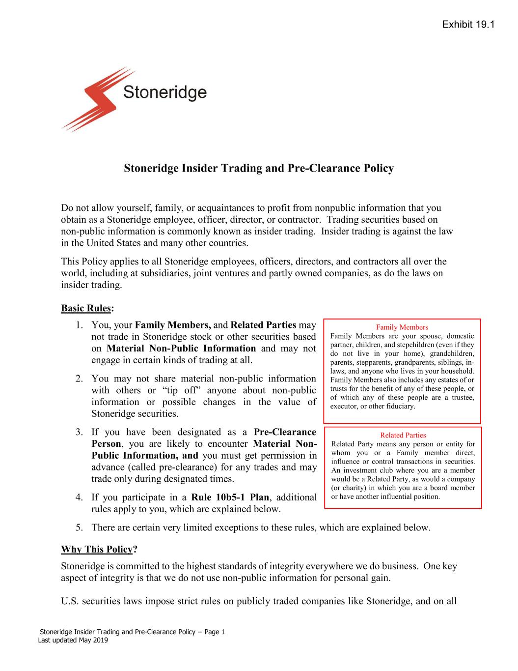 | Stoneridge Electronics, Inc. |