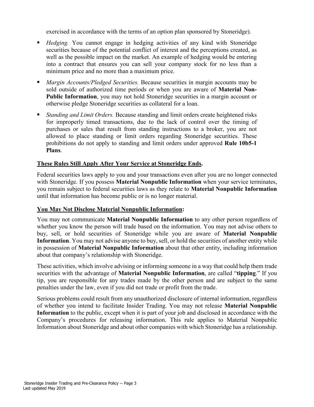 | Stoneridge Fleet Solutions, Inc., F/K/A Stoneridge Aftermarket, Inc. |