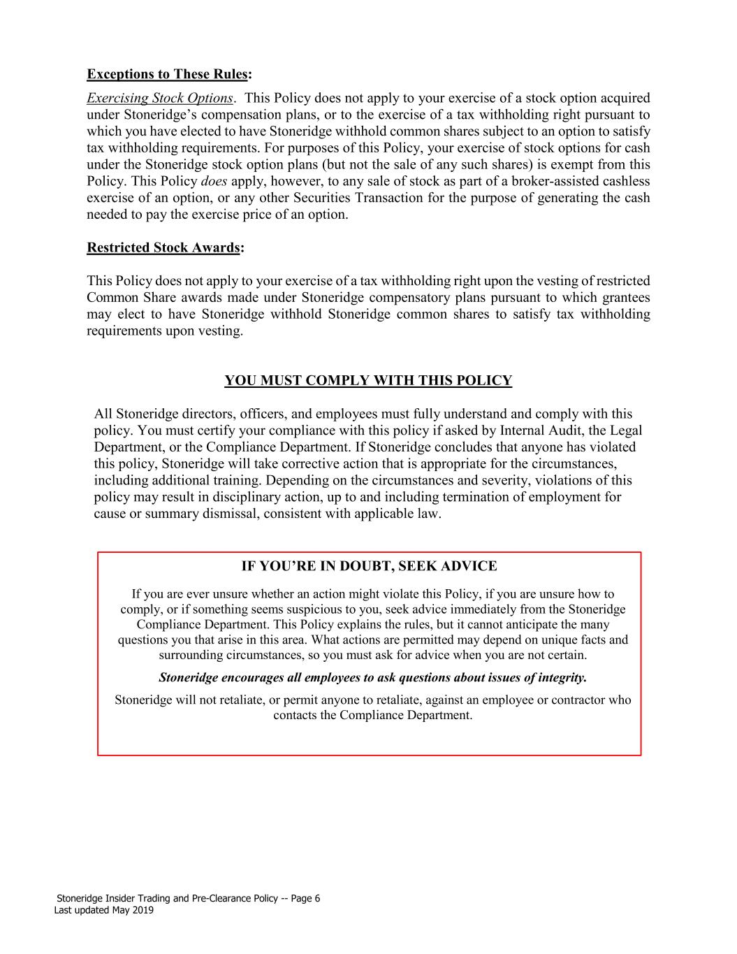 Form S-8 – Stoneridge, Inc. 2018 Amended and Restated Directors’ Restricted Shares Plan, |