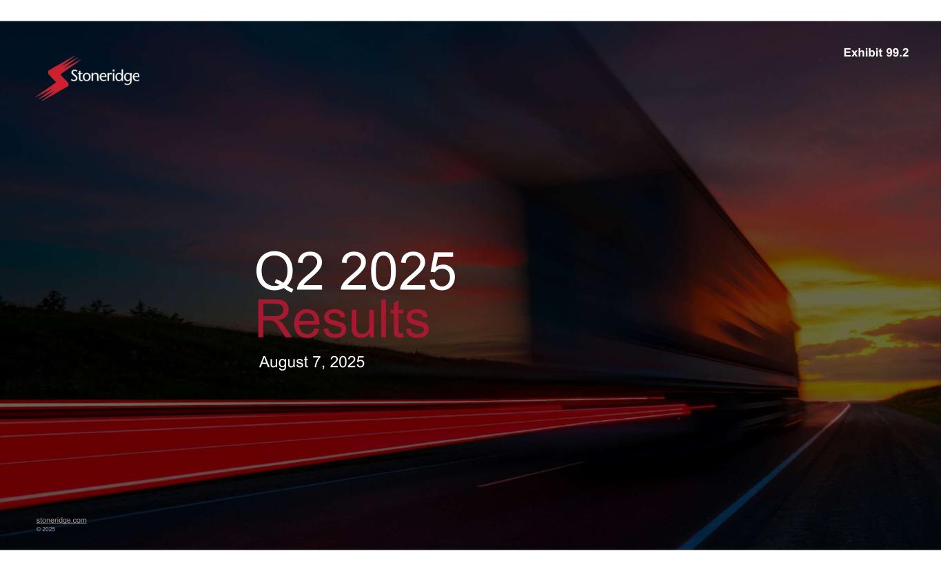 Stoneridge社の2025年第2四半期決算に関する電話会議のインターネット生中継は、東部時間8月7日(木)午前9時からwww.stoneridge.com、ウェブ中継のリプレイも提供される。