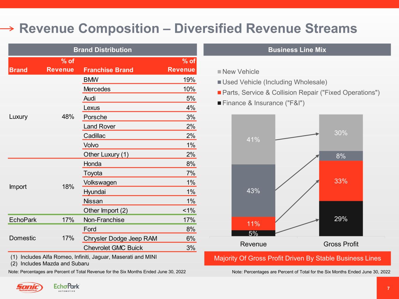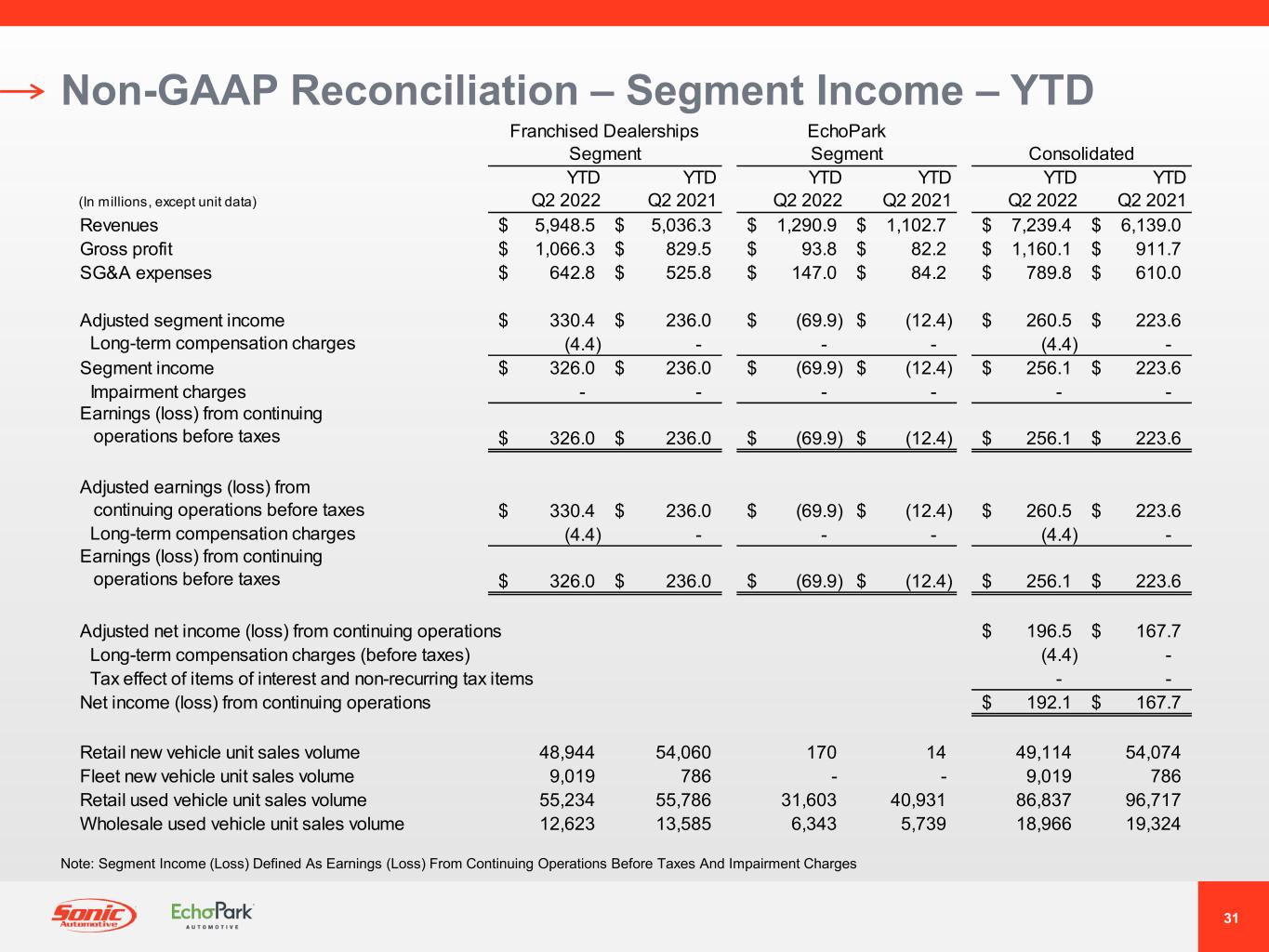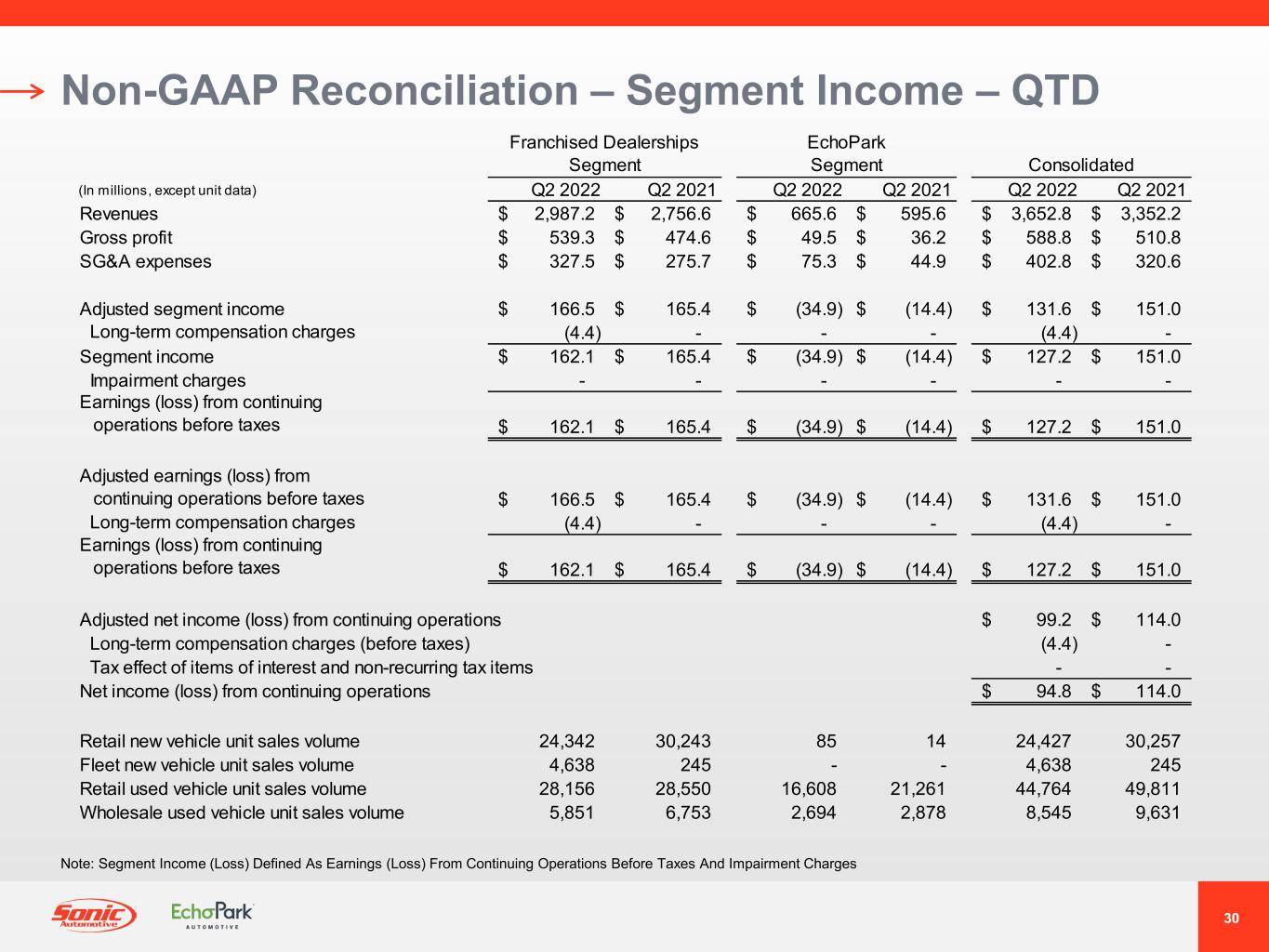 CHARLOTTE, N.C. - 2022年7月28日 - 米国最大級の自動車小売業者であるSonic Automotive, Inc. (以下、ソニックオートモーティブ、ソニックまたは当社) (NYSE:SAH) は本日、2022年度第2四半期および6カ月間の決算を発表しました。