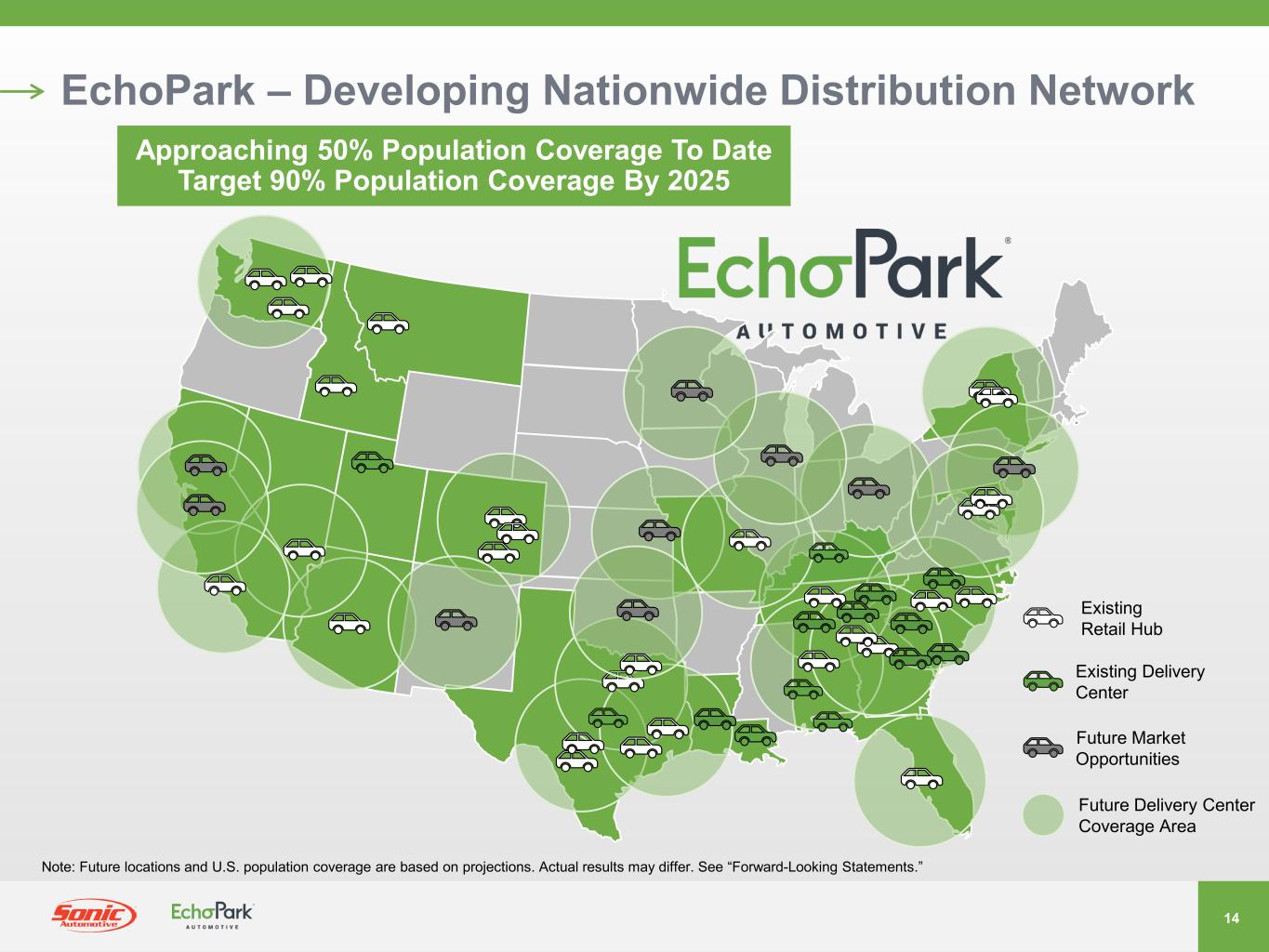 ここに含まれるのは、EchoParkのオムニチャネル戦略や将来の米国人口カバー率に関する記述を含む、将来の見通しに関する記述です。当社の事業の将来の出来事や動向に関する経営陣の見解に影響を与える要因は数多くあります。これらの要因には、当社が事業を展開する市場の経済状況、サプライチェーンの混乱や製造の遅れ、労働力不足、インフレや金利上昇の影響、新車・中古車業界の販売台数、将来の新車・中古車に対する消費者の需要水準、当社のEchoParkセグメントにおける将来の成長予測などが含まれますが、これらに限定されない、リスクや不確実性があり、実際の結果や動向は当社の見解から大きくかけ離れたものとなる可能性があります。当社の事業戦略の成功、経済全体の拡大または縮小の速度と時期、RFJオート社の買収の統合、COVID-19パンデミックおよび関連する政府による事業規制の影響、ならびに2021年12月31日に終了した年度の当社のフォーム10Kに関する年次報告書および米国証券取引委員会(以下「SEC」)に提出したその他の報告および情報に記載のリスク要因があります。当社は、連邦証券法およびSECの規則および規制の下で要求される場合を除き、将来見通し情報を更新する義務を負いません。